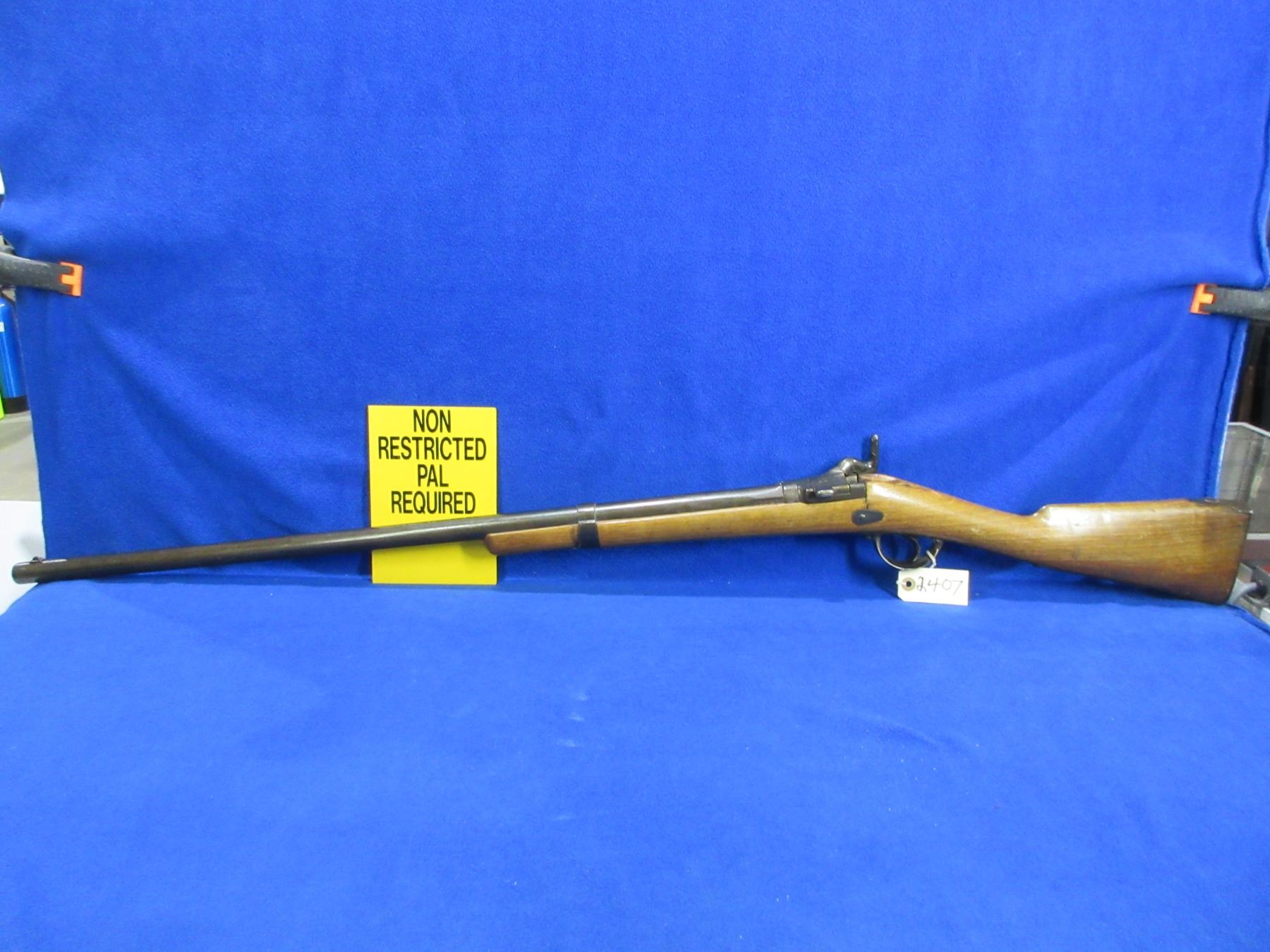 Non-Restricted - Zulu Breech Load in 12 Ga 2 3/4" - This is a single shot breech load shotgun, action appears to be in fair to good working order but is missing a set screw that holds the breech pin in. Barrel is 32", bore is fair, bluing is mostly brown, has front blade sight, stock has a crack on the left of action at the top, metal butt plate good, rear swivel missing, cleaning rod missing. Ser # 551574