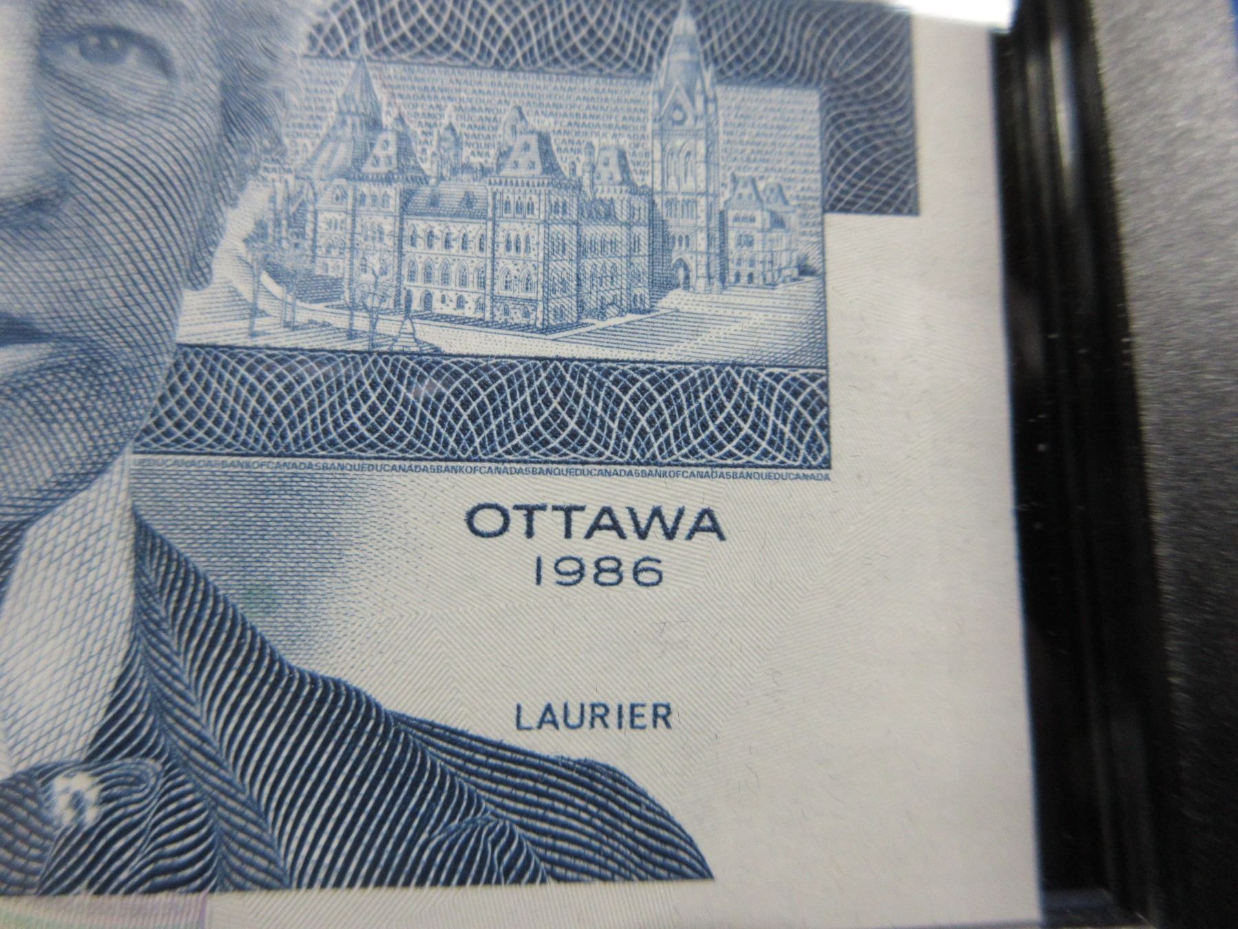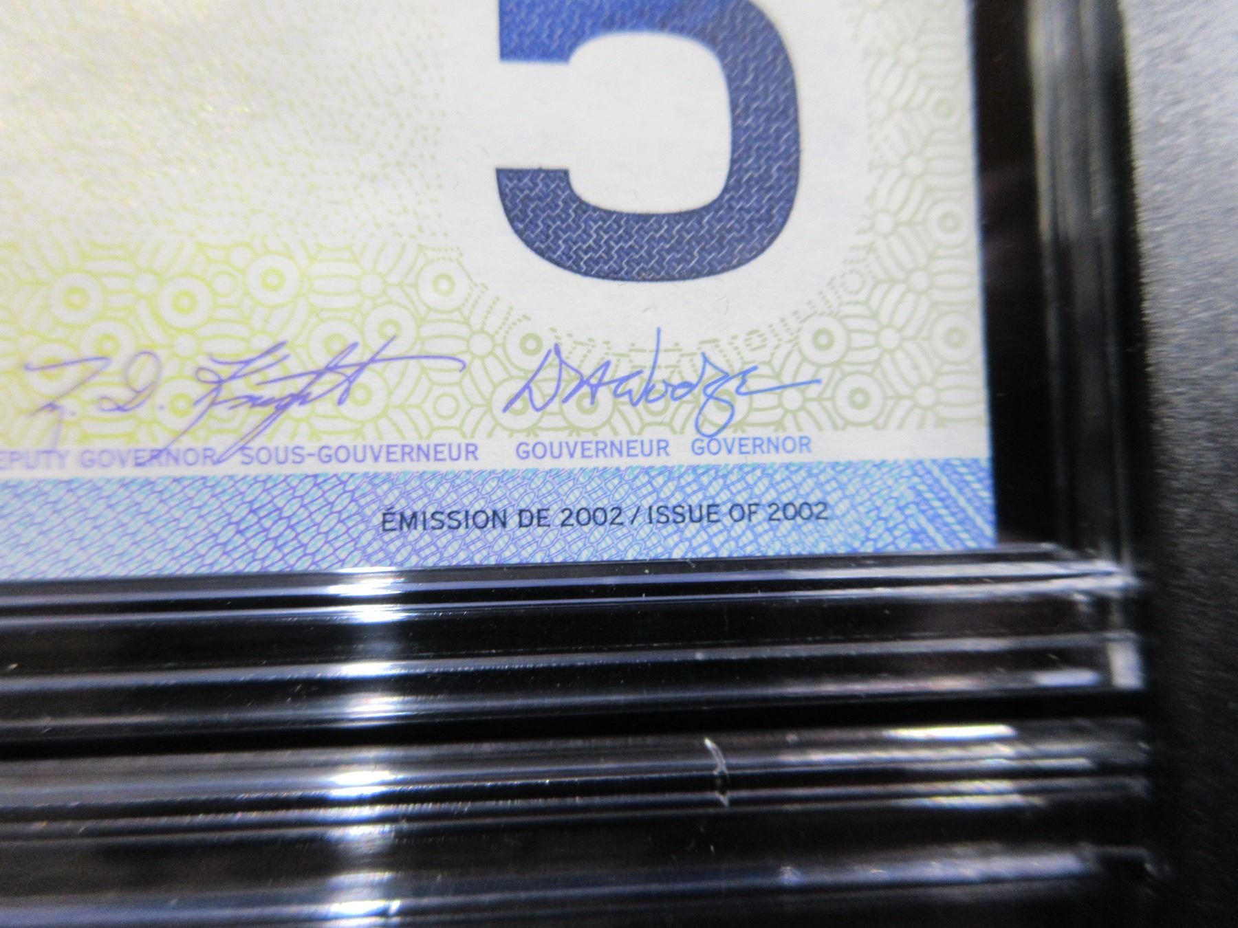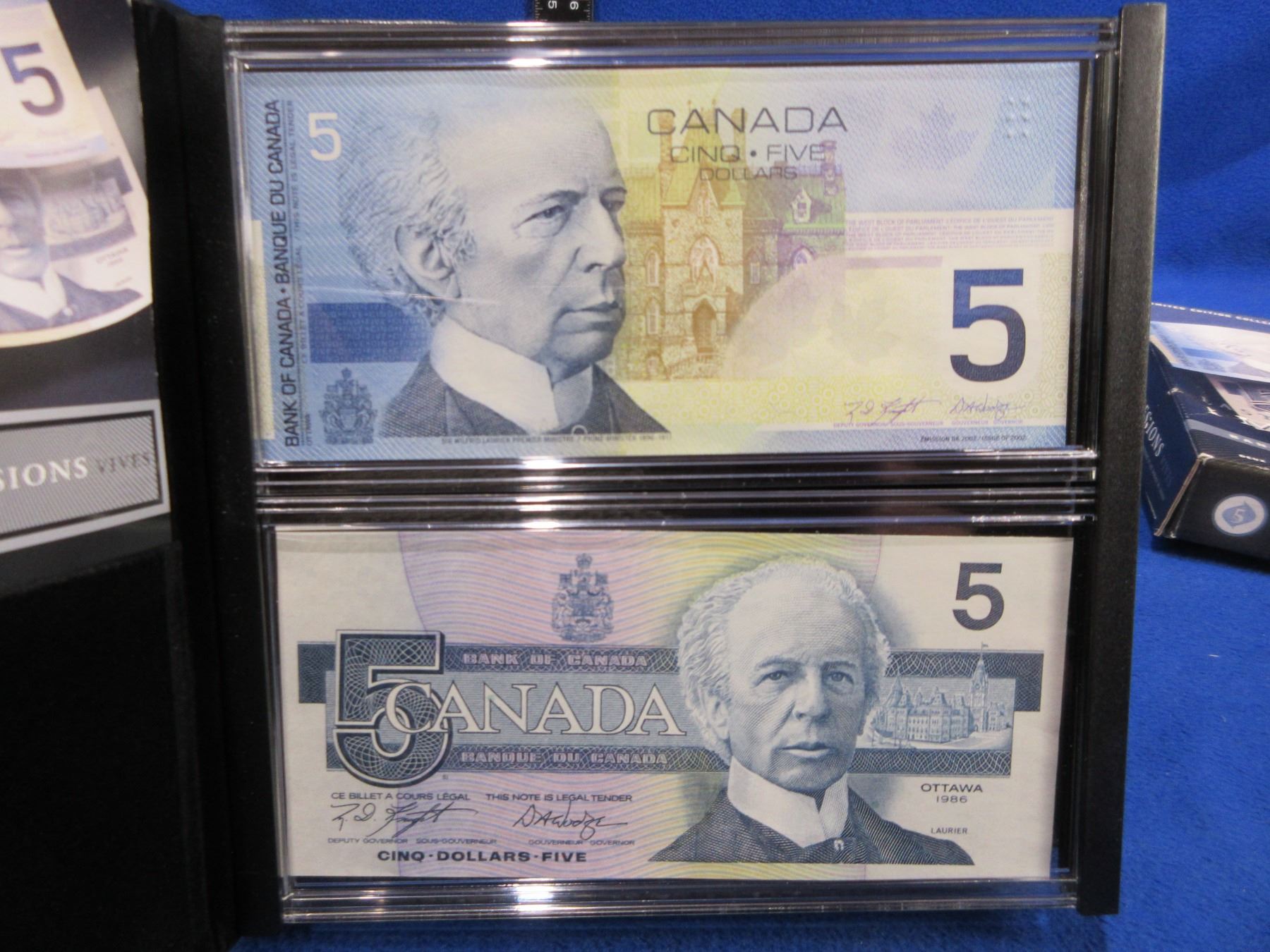 Lot 2422 Bank of Canada 2 Uncirculated 5 Dollar Bills 1986 & 2002