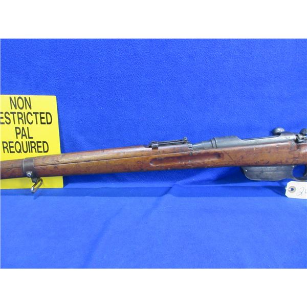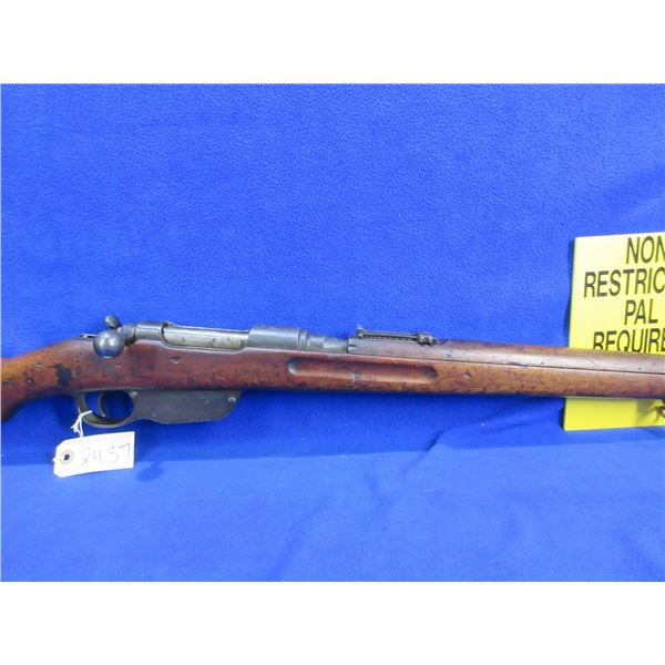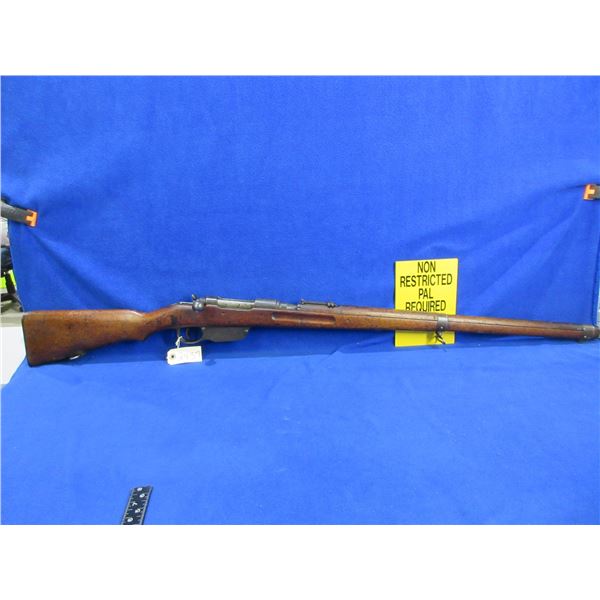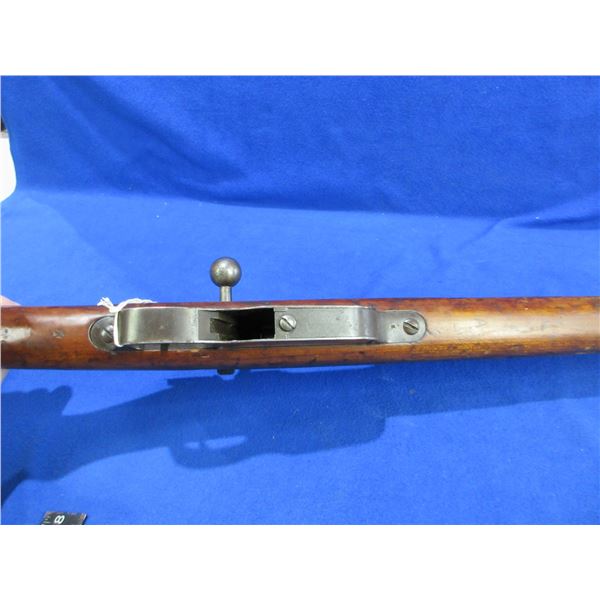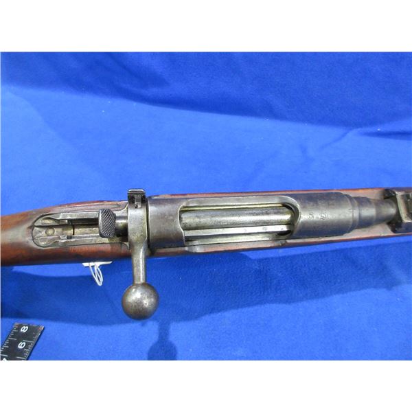 Non-Restricted - Steyr Model M95 in Unknown Caliber - The Steyr Mannlicher M95 was originally chambered for the 8x50mmR cartridge. However, many were later converted to the more powerful 8x56mmR round, particularly between the World Wars. This is a straight pull bolt action rifle that uses stripper clips and an internal magazine, action appears to be in good to very good working order. Barrel is 30", rifling is good but quite dark, bluing is mostly grey, has both sights, full wood stock is good for age with many usage marks, butt plate good, comes with swivels. Ser #9548H