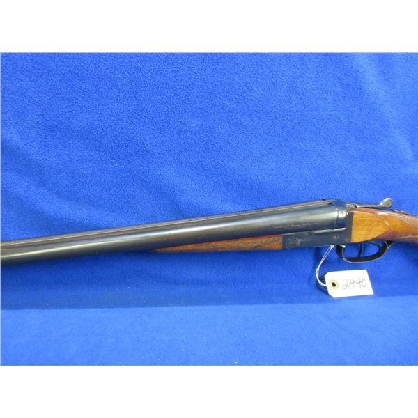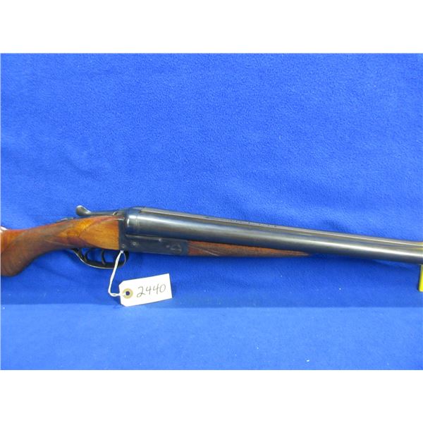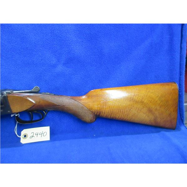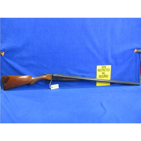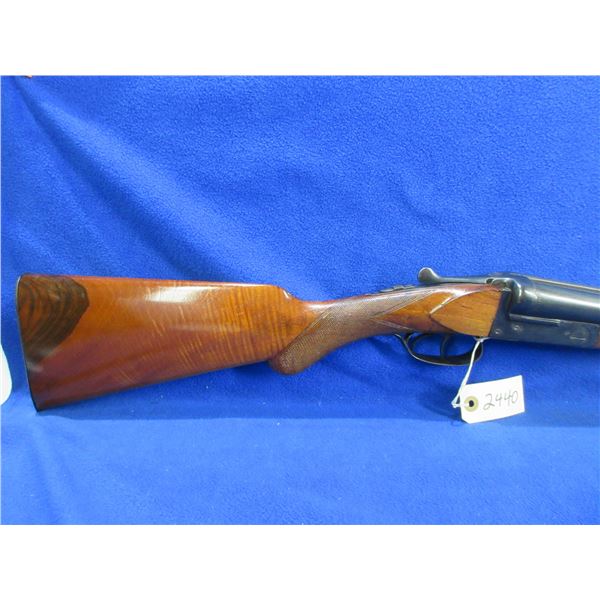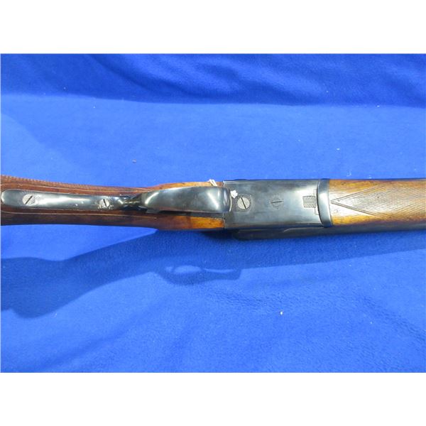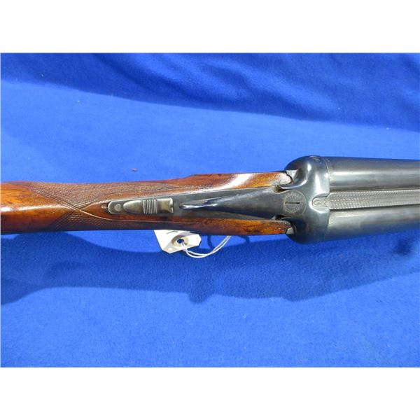 Non-Restricted - Leige Belgium in 12 Ga. 2 3/4" - Very interesting look to the stock, nice finish that gives the grain a unique depth. This is a tip up SXS shotgun, action has a very small bit of play but appears to be in good to very good working order. Barrels are 30" and there is a dent on the top of the right barrel approx 5 1/2" from muzzle, bores are good to very good, bluing is good to very good, has bead front sight, stock is good to very good, forearm is good to very good, metal butt plate. Ser # 11001