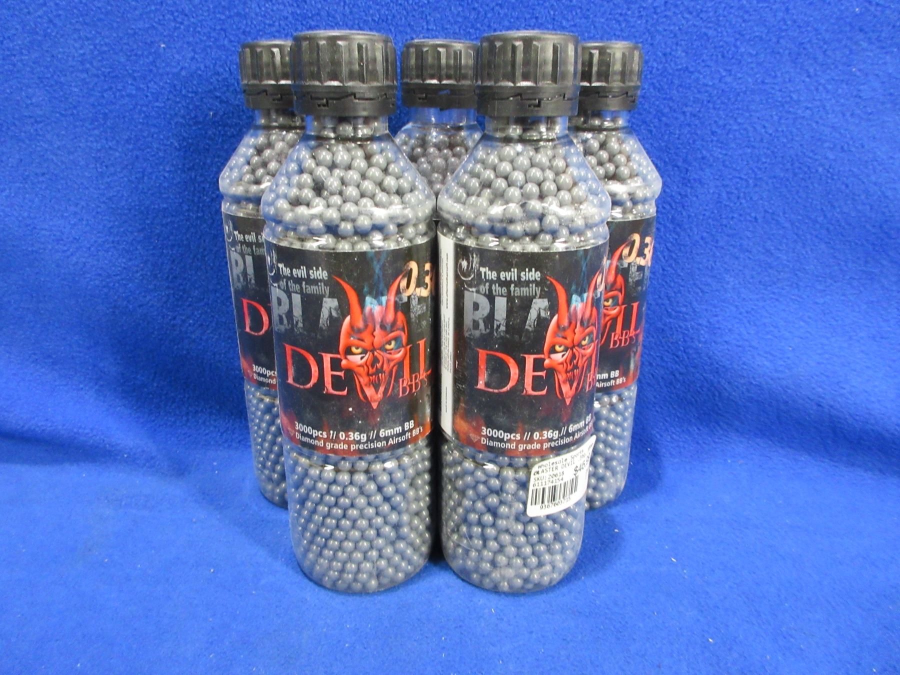 Blaster Devil Airsoft BB's - 0.36g/6mm BB - 5 Sealed Bottles of 3000