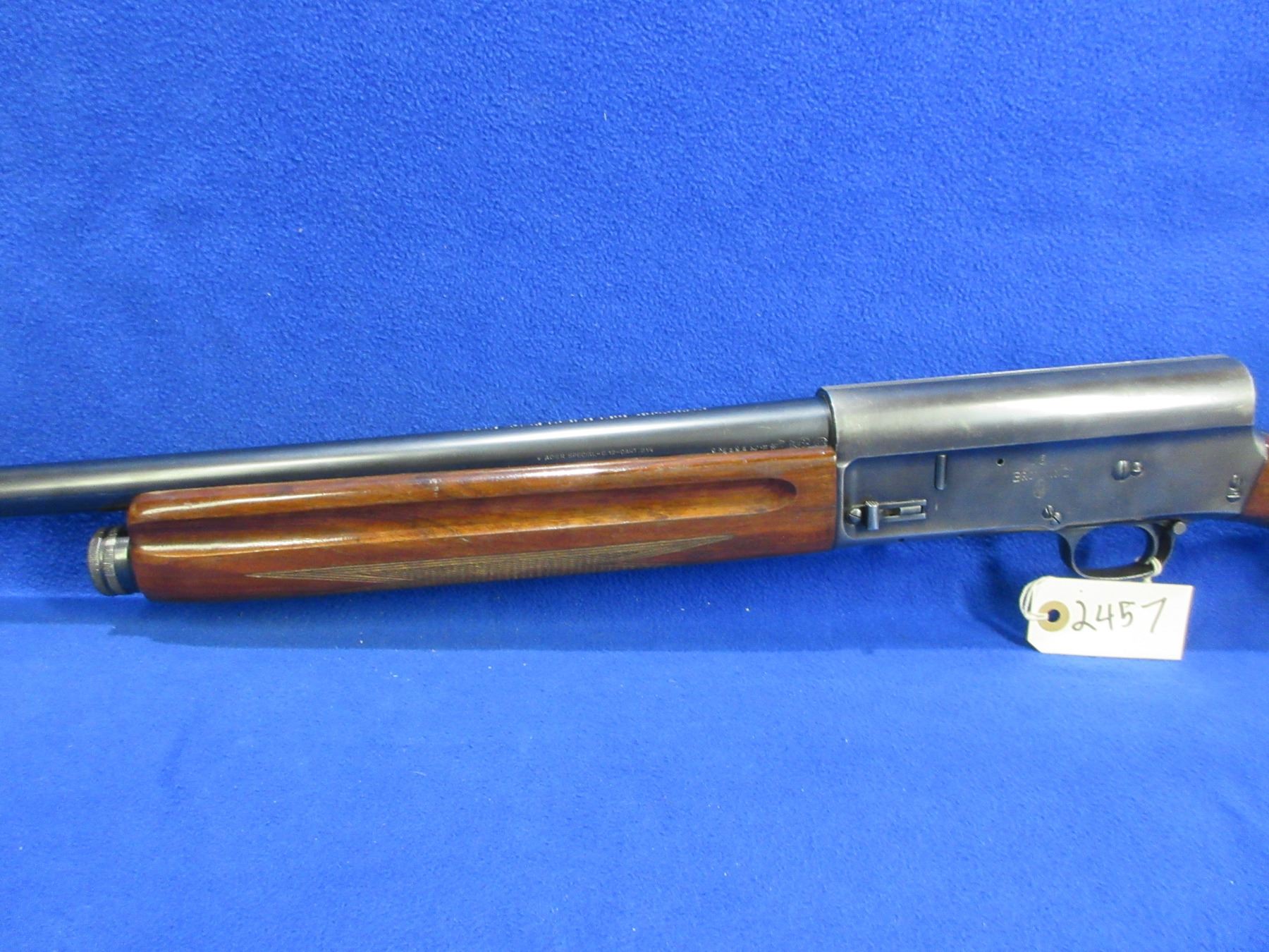 Non-Restricted - FN Browning A5 in 12 Ga. 2 3/4" - This is a semi-auto shotgun, action appears to be in good to very good working order. Barrel is 29 1/2", bore is good to very good, bluing is good to very good but starting to fade, has bead front sight, stock is good to very good with usage marks, forearm has a couple of cracks beside the action, butt plate good, comes with rear swivel. Ser #393434