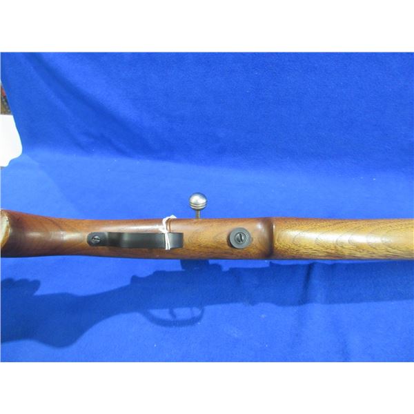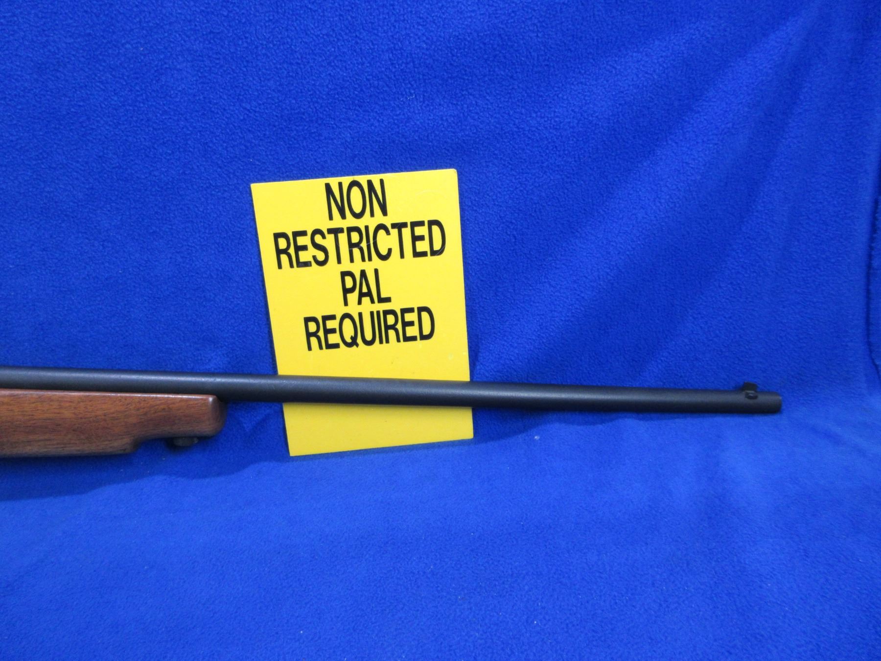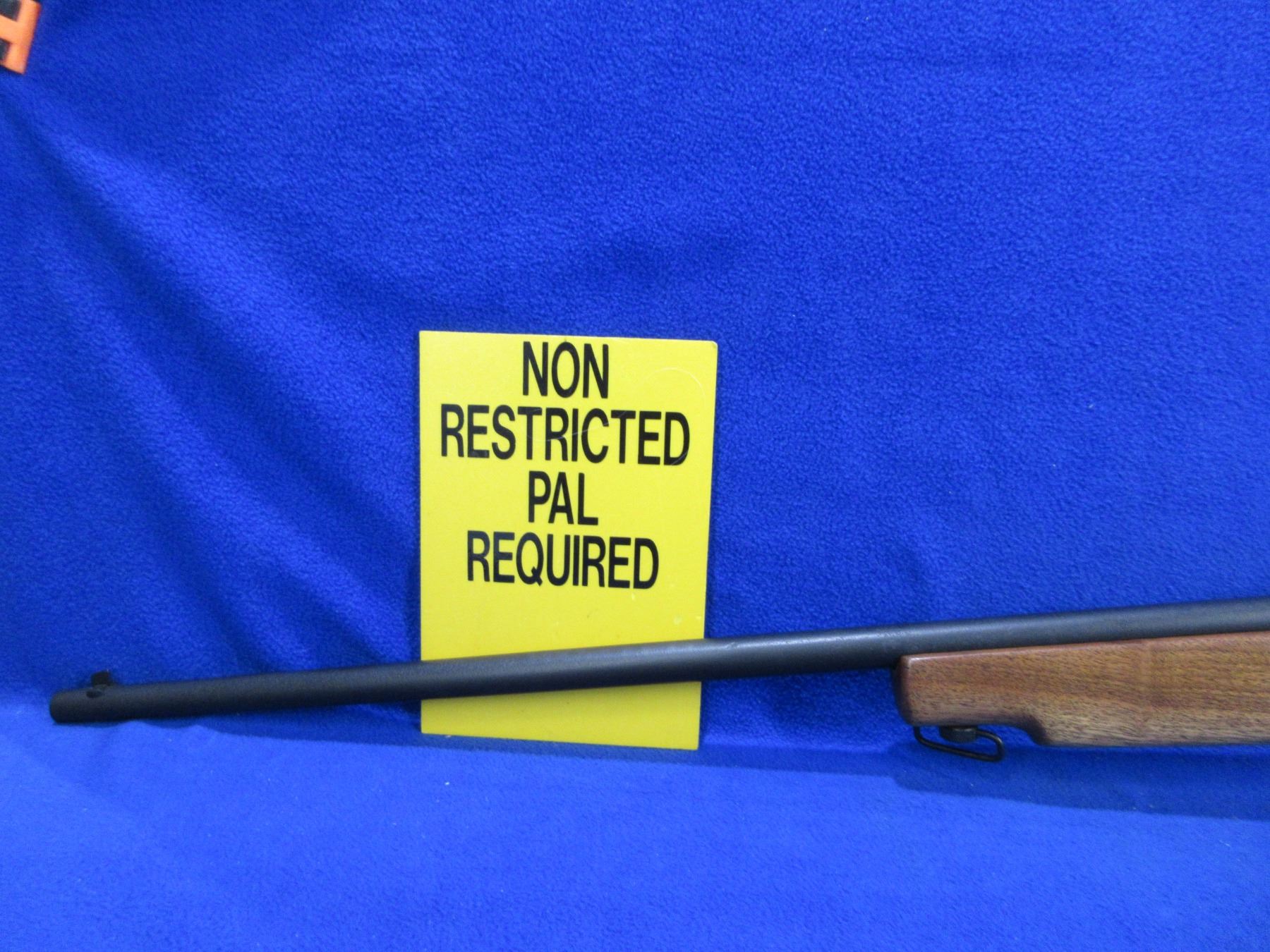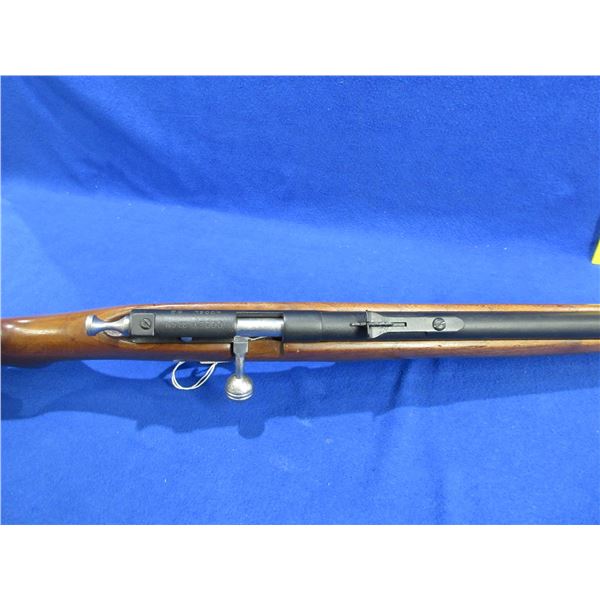 Non-Restricted - Cooey Model 82 in 22 LR - This is a single shot bolt action rifle, action appears to be in good to very good working order. Barrel is 27", rifling is good to very good, bluing refinished to matte black finish over top of some pitting, has both sights, stock has been refinished and is good to very good, metal butt plate good, comes with swivels. Ser # None