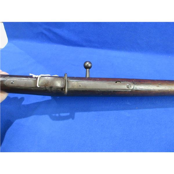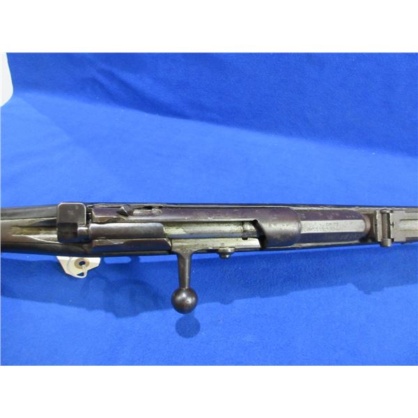 Non-Restricted - Erfurt 71/84 believed to be in 11x60mm Black Powder - This is a bolt action rifle with internal magazine, action appears to be in good working order. Barrel is 31 1/2", rifling is poor to fair and very dark, bluing is turning brown and pitted, has both sights, stock is good but oil soaked, metal butt plate good, comes with front swivel. Ser #9334