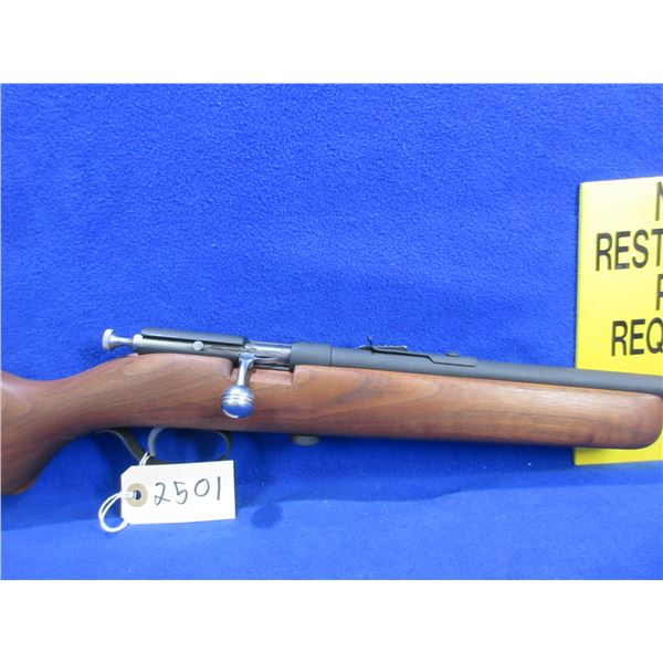 Non-Restricted - Cooey Model 39 in 22 LR - This is a single shot bolt action rifle, action appears to be in good to very good working order. Barrel is 22", rifling is good to very good, bluing has been refinished to matte black finish and is very good , has both sights, stock has been refinished and is good to very good, metal butt plate good. Ser # None