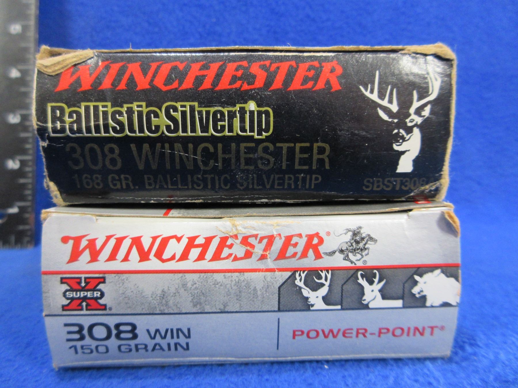 308 Win. Mixed Factory (Pick Up or Ship by UPS Only) Cartridges - Box of 20 (150gr Winchester PP), Box of 10 (168gr Winchester Ballistic Silvertip), Box of 8 (Mixed), Box of 5 (Mixed)