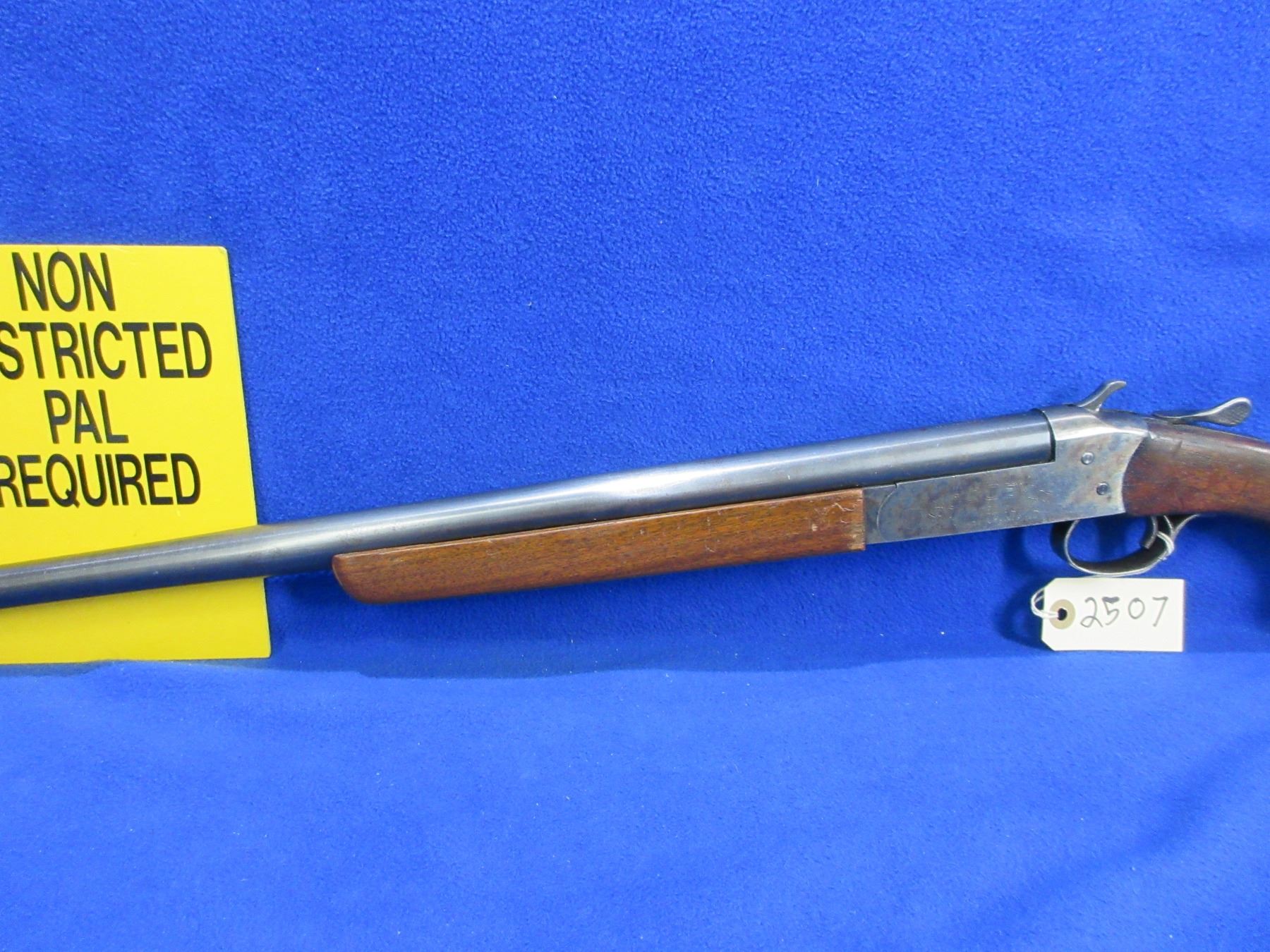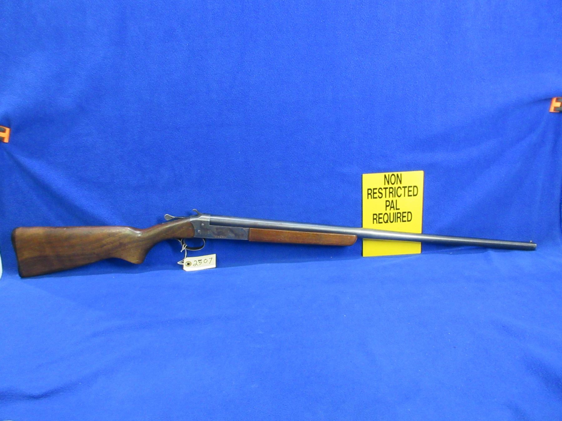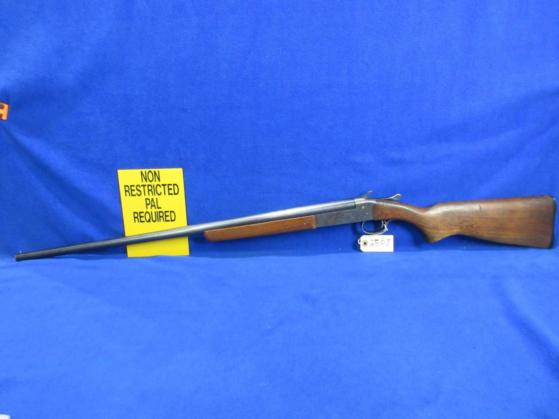 Non-Restricted - Cooey Model 84 in 20 Ga. 2 3/4" - This is a tip up single shot shotgun, case hardened action is tight and appears to be in good to very good working order. Barrel is 28", bore is good to very good, bluing is turning grey, has bead front sight, stock is good with finish loss, forearm is good, butt plate good. Ser # 64214
