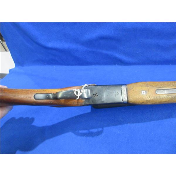 Non-Restricted - Baikal Model IJ-43 in 12 Ga. 2 3/4" - Made in USSR, this is a tip up SXS shotgun with ejectors, action is tight and appears to be in good to very good working order. Barrels are 28 1/2", bores are good, bluing is good, has bead front sight, stock is poor to fair as has been shortened, is loose, has cracks by the upper and lower tangs and a chip by the trigger goard, forearm is good with wear, butt plate good. Ser # 8857312
