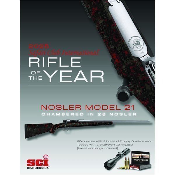 Lot 31 Ammo Box # 9 of 10. One Lucky bidder will win the SCI 2025 Rifle of the year. Nosler Mod. 21