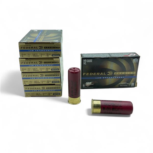 Federal Premium Law Enforcement 12 Ga, 2-3/4", 9 Pellet, 00 Buck Elite Control Wad Tactical Ammunition, 25 Rounds