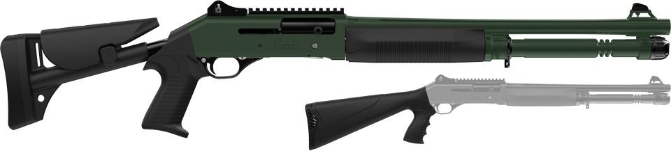 The NEW Canuck Operator Elite 12ga Semi-Auto Shotgun is a well built clone of one of the Benelli M4, arguably the most popular semi-automatic shotgun in the world. Tactical has never been so affordable. The Canuck Operator features an 18.6″ chrome-lined barrel, adjustable ghost ring rear sights with a fixed fibre optic front, a synthetic adjustable buttstock with pistol grip and comes with 5x Mobil Chokes (F, IM, M, IC, C).