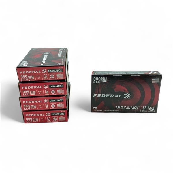 Federal American Eagle .223 Rem, 55 Grain FMJBT Ammunition, 100 Rounds