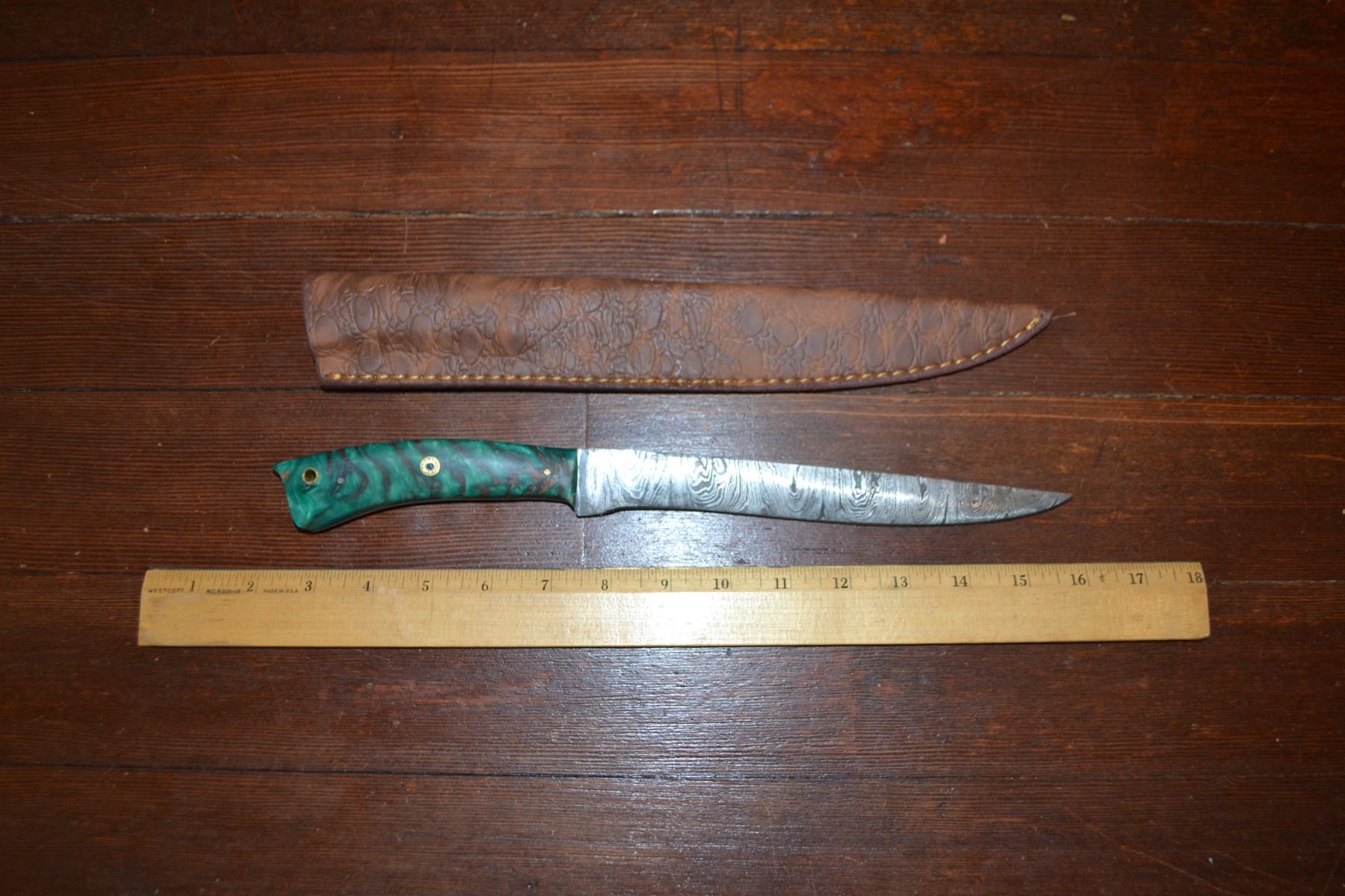 Lot 216 Handmade Damascus Steel Knife & Sheath