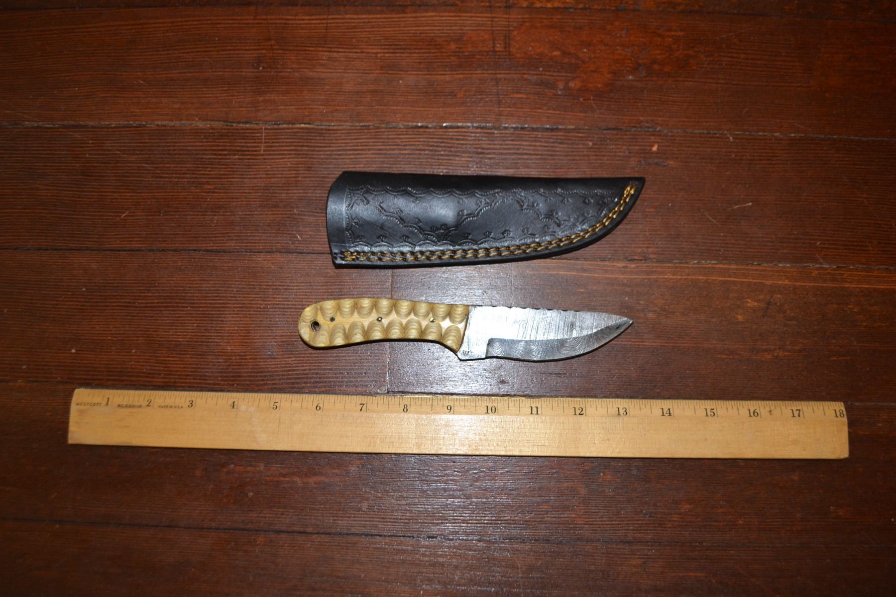 Lot 232 Handmade Damascus Steel Knife & Sheath