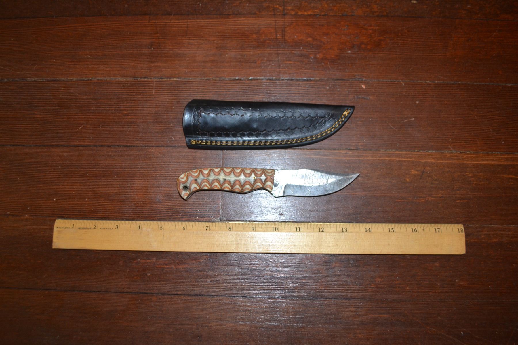 Lot 236 Handmade Damascus Steel Knife & Sheath