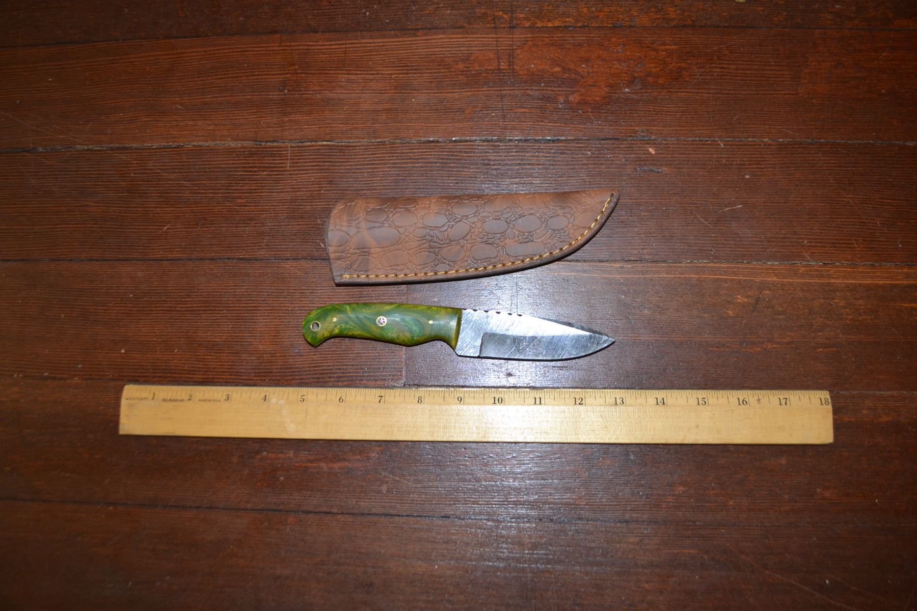 Lot 242 Handmade Damascus Steel Knife & Sheath
