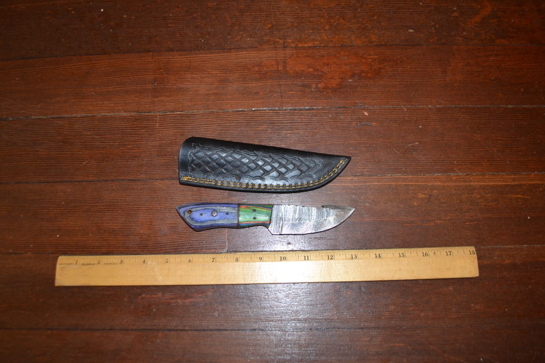 Lot 244 Handmade Damascus Steel Knife & Sheath
