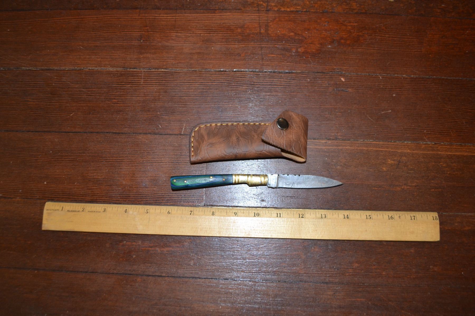 Lot 237 Handmade Damascus Steel Knife & Sheath