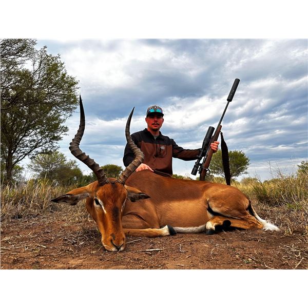Come experience the thrill of hunting Africa with this 2 person, 9 day, 8 night hunt in Thabazimbi, South Africa with Monkane Safaris. Also included with your experience are high end accommodations at Monkane’s private lodge, chef prepared meals, drinks, laundry service, and house keeping. All of your ground transportation during your hunt is included, and you will be with a PH and guides the entirety of your trip. Everything from impala to cape buffalo are waiting for you on this bucket list package. Let Monkane Safaris provide you with the hunt of a lifetime. Hunt trip valid 2025-2026