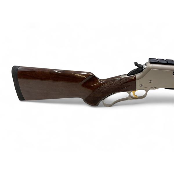 Browning BLR Light Weight Stainless Lever Action Rifle 308 Win 20" Barrel Wood Stock. Comes with one detachable magazine. Factory open sights; receiver drilled and tapped with one piece rail installed. This is a non-restricted firearm.