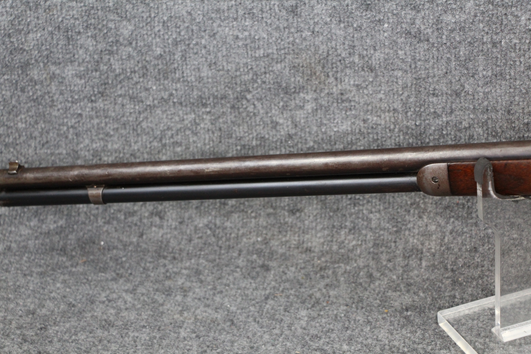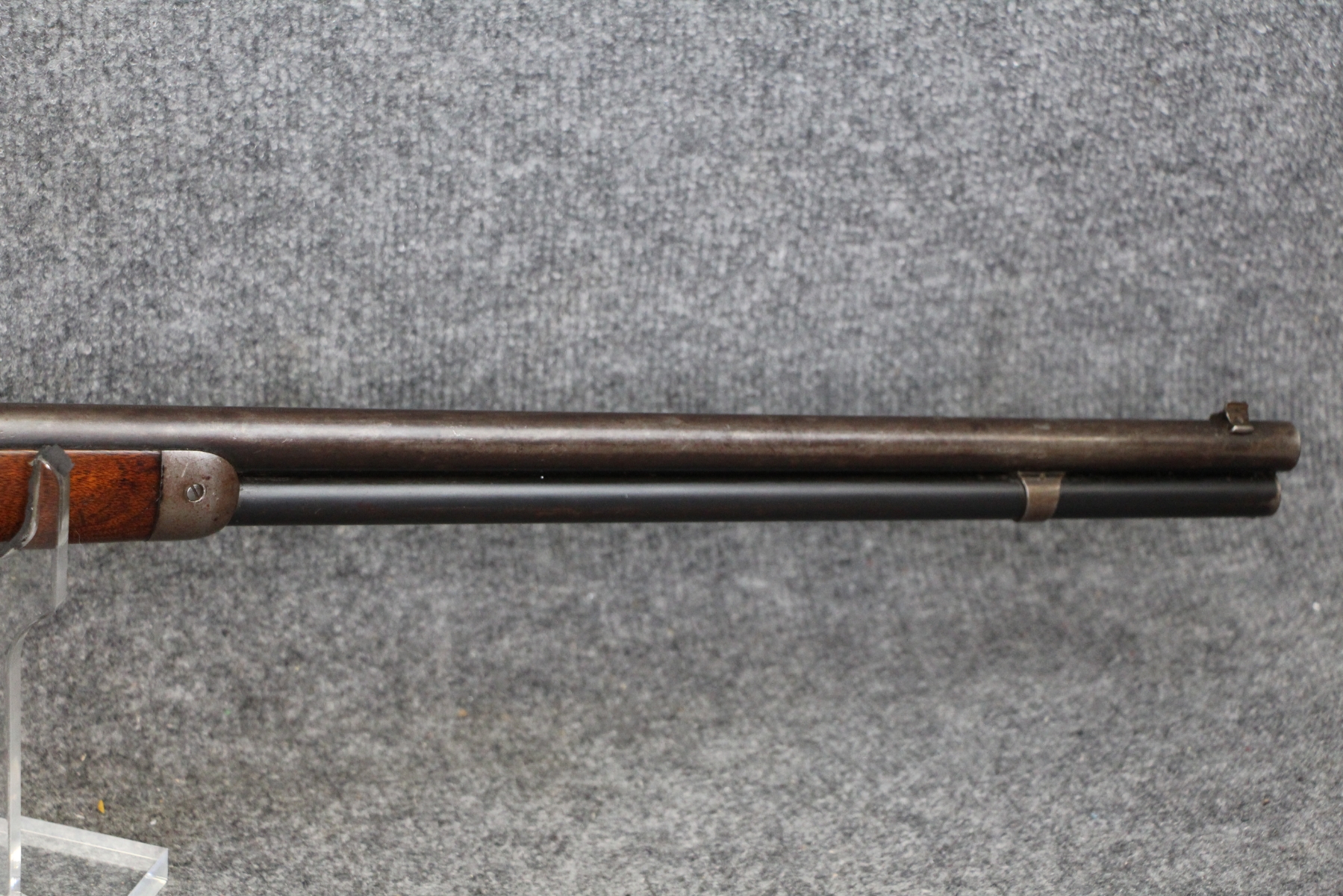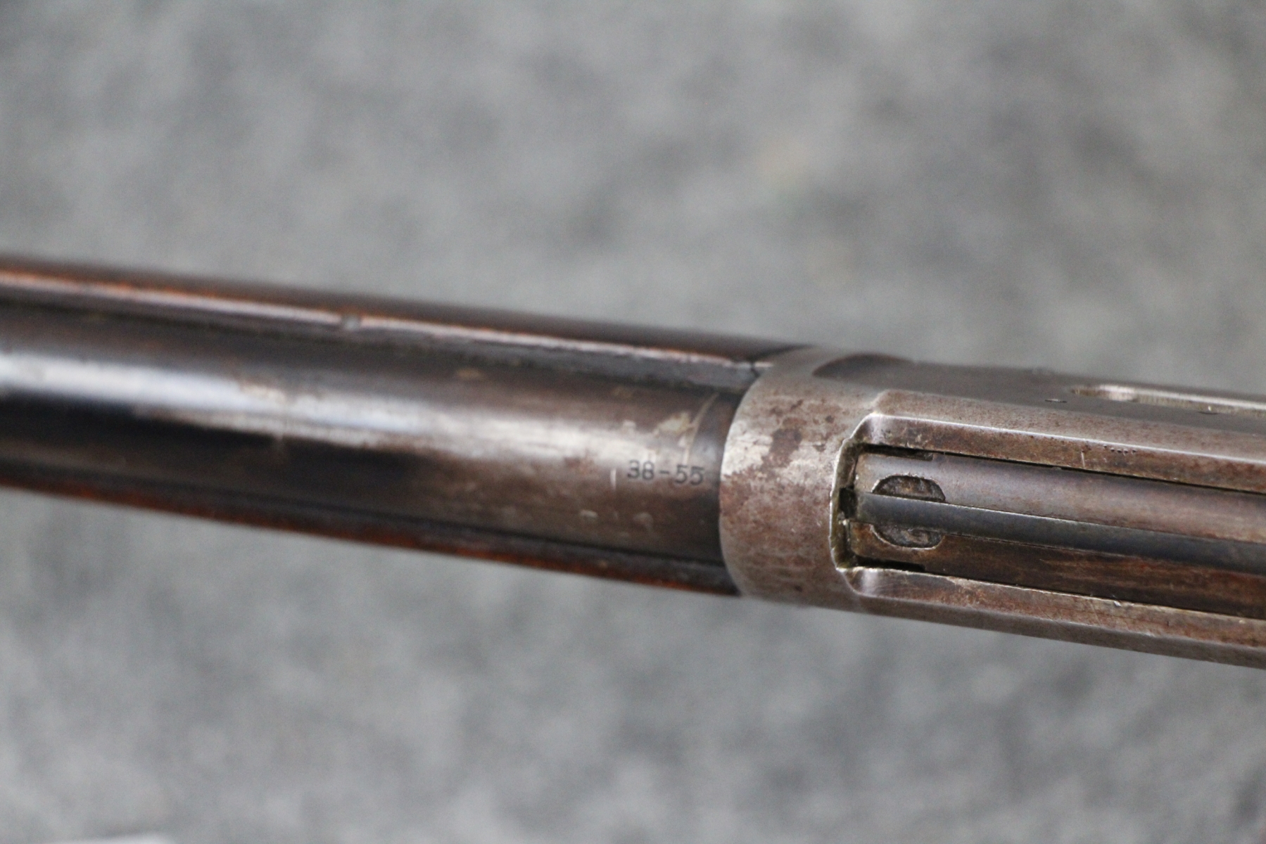 Condition good. Much handling wear and kill notches. Lots of shallow scratches on the receiver as well as blueing wear. No rust nor dents in the tube. Barrel length 26". Cal. 38-55. Aftermarket rear sight. Appears to have had the tube replaced.