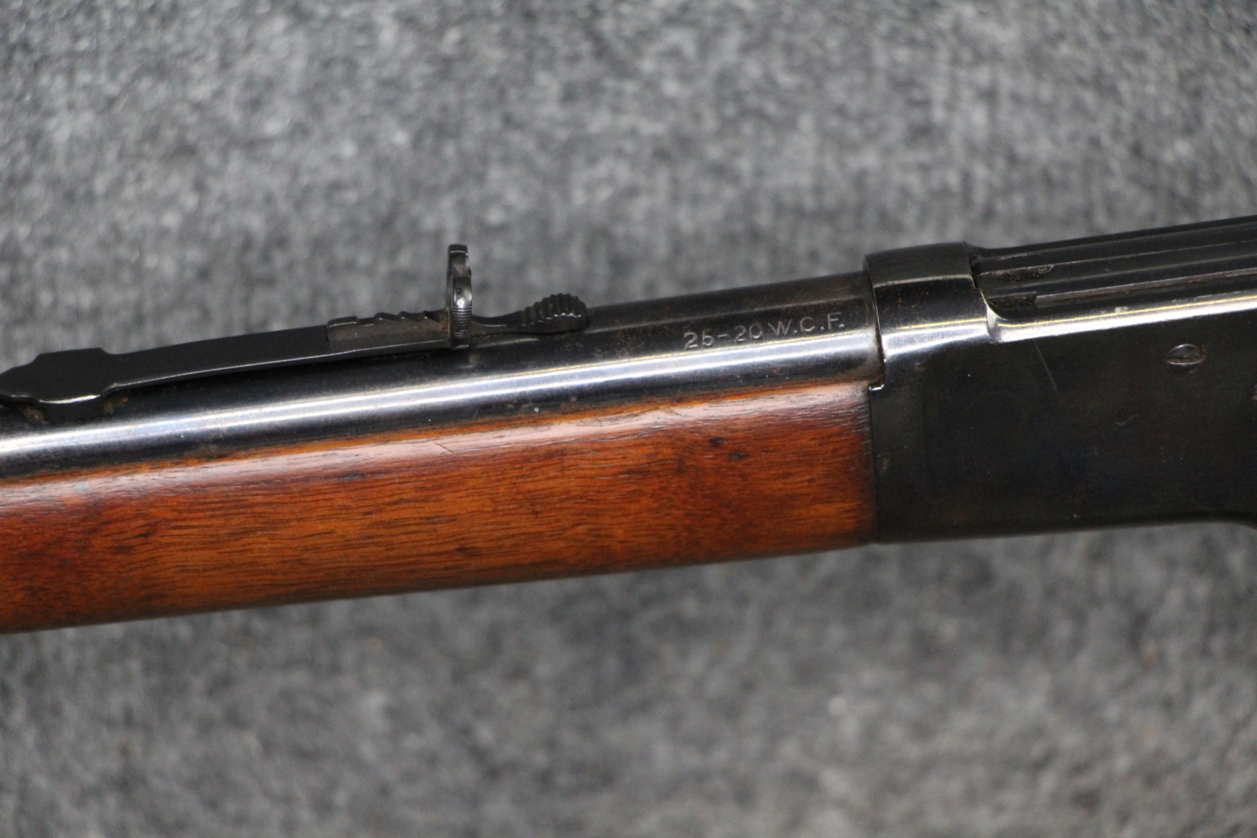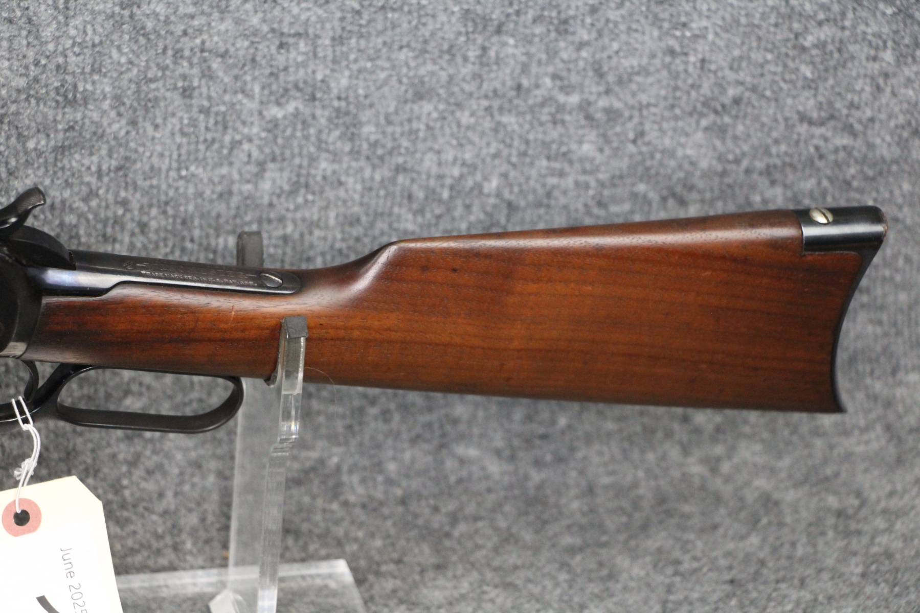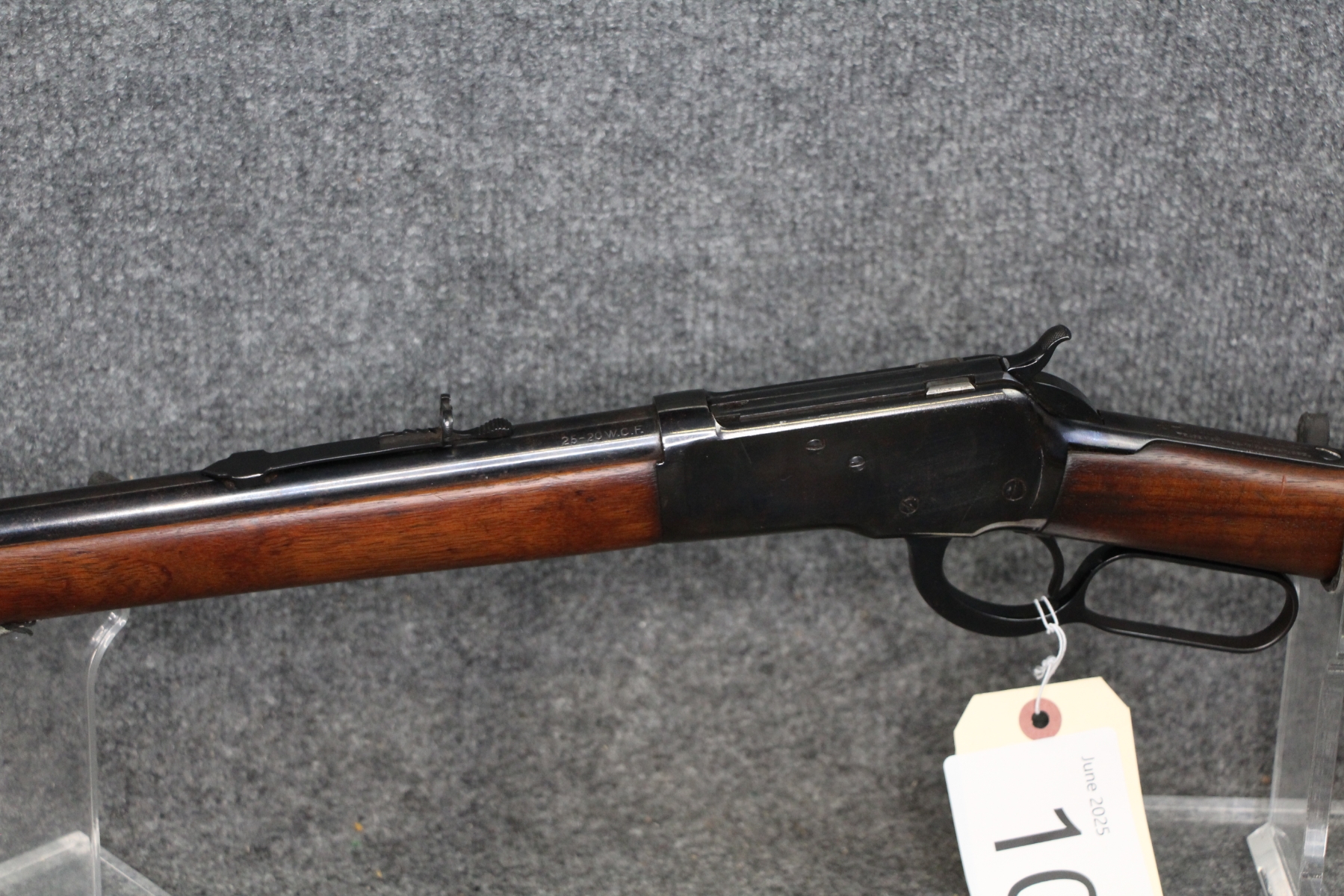 Condition good to very good. Many shallow scratches on the receiver and barrel. No rust nor dents in the tube. Stock is nearly pristine. Barrel length 24". Cal. 25-20. Ser. 797638. Made 1915.