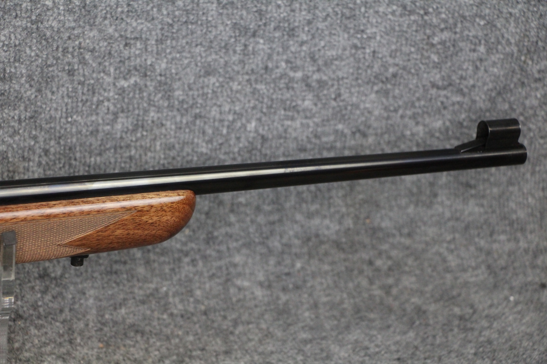Condition excellent. Not a mark on this gun. Barrel length 22". Cal. 30-06. Safari model. High gloss blueing. Leupold bases.
