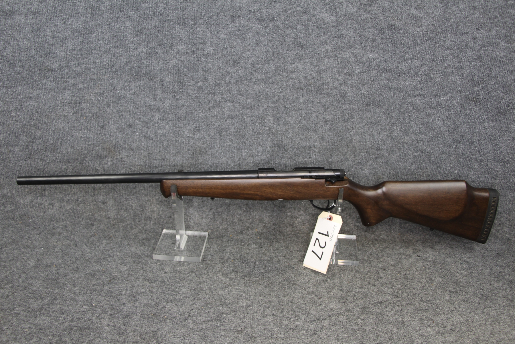 Condition excellent. Not a mark on this gun. Barrel length 21". Cal. 22 Lr.