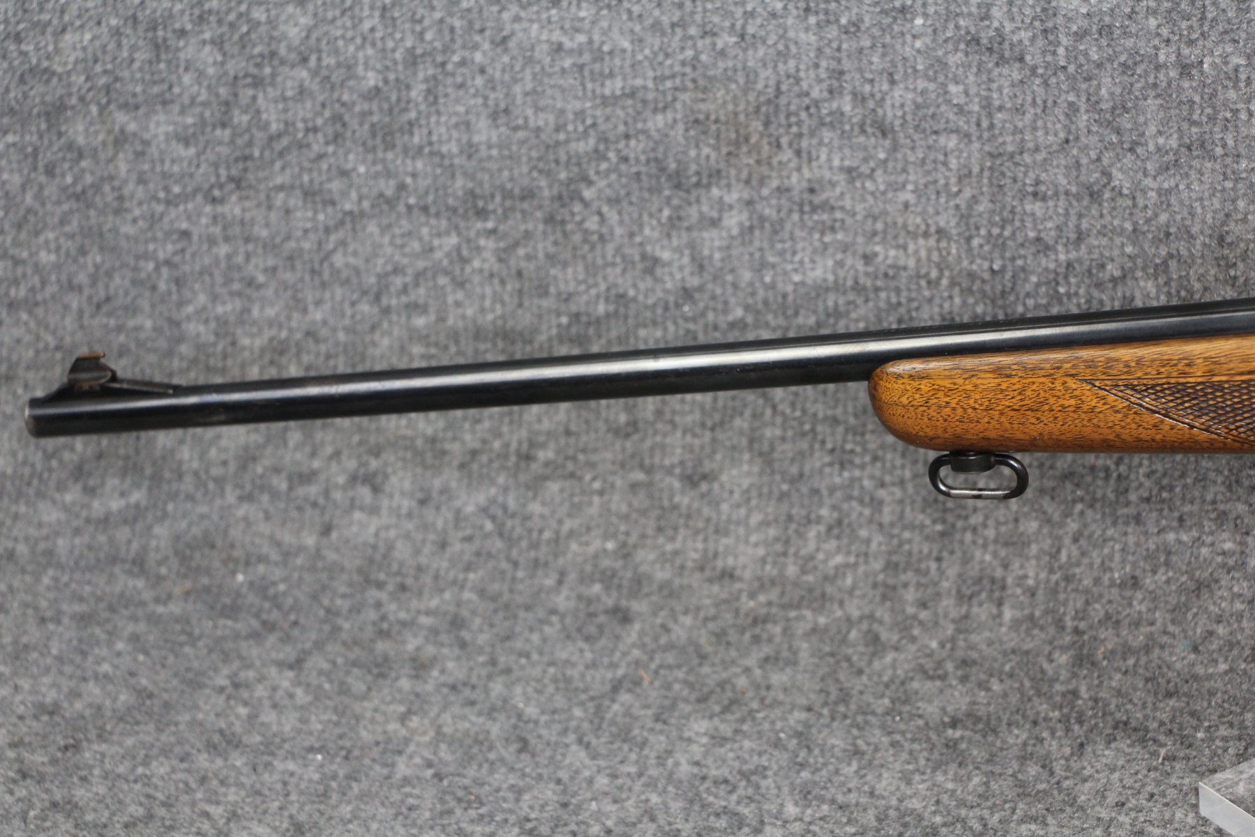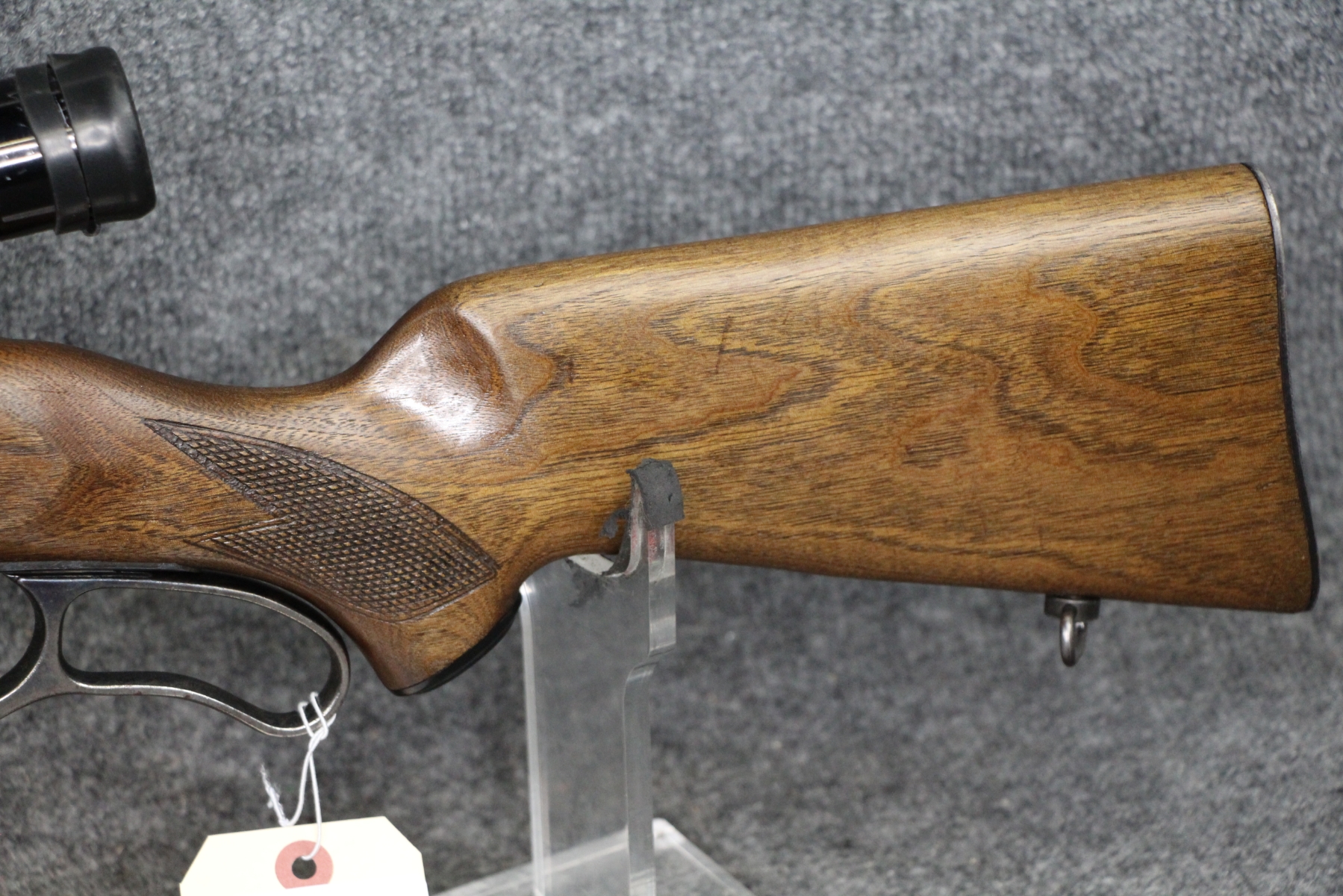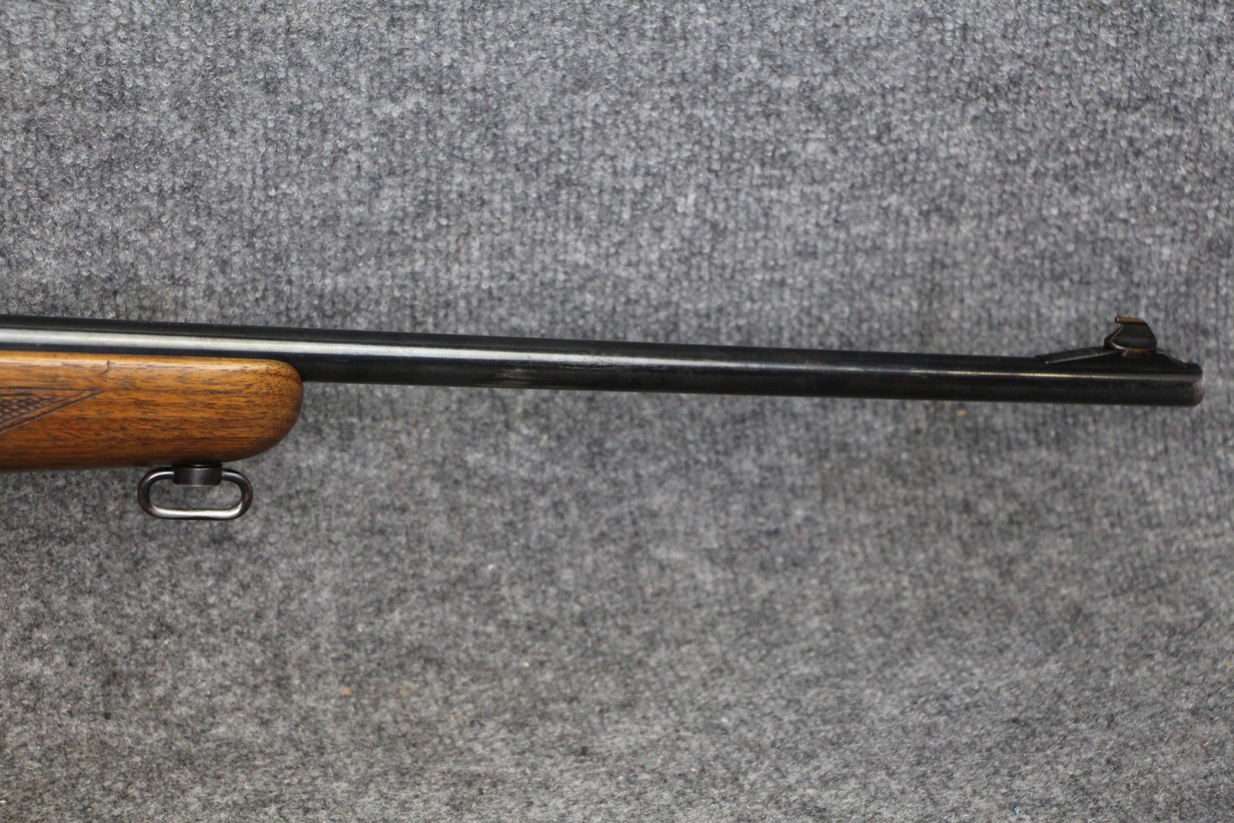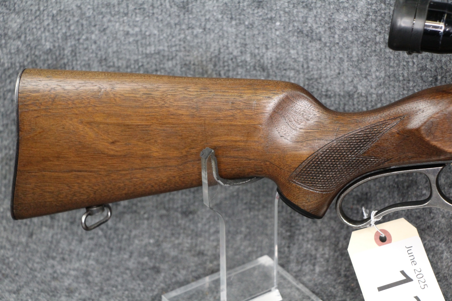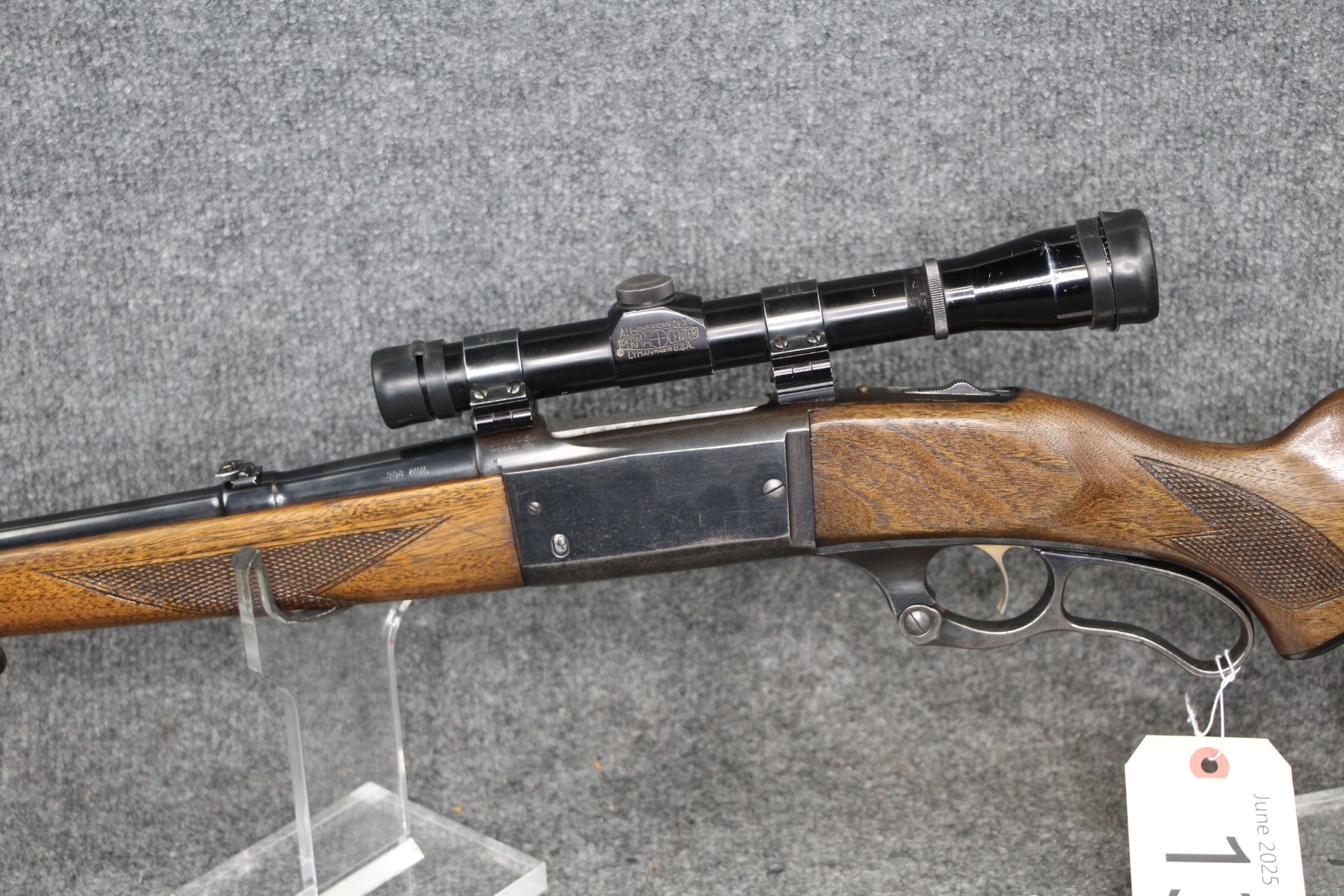Condition very good to excellent. Only blueing wear. Barrel length 21". Cal. 308. Gold trigger. Round counter. Oil finish. Lyman steel tube 2 1/2x scope with post and crosshair reticle.