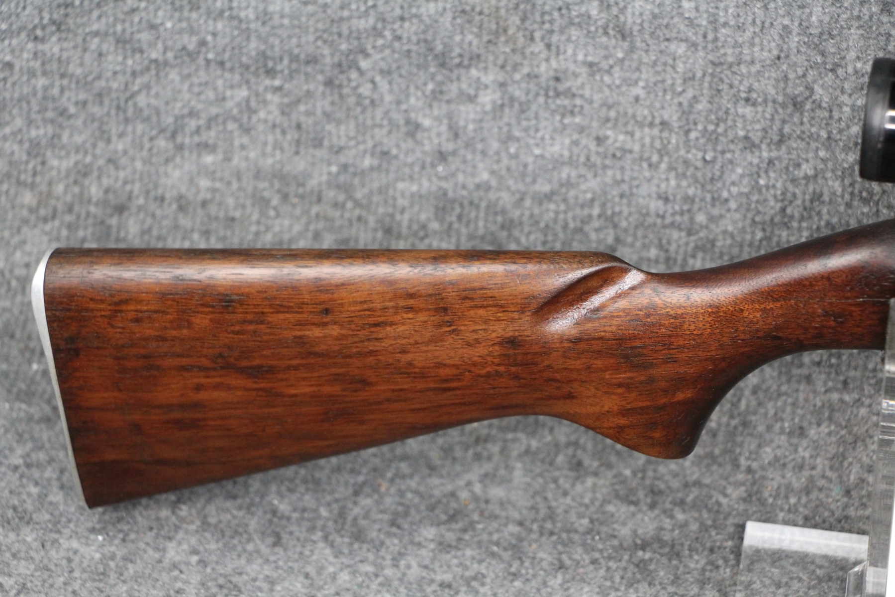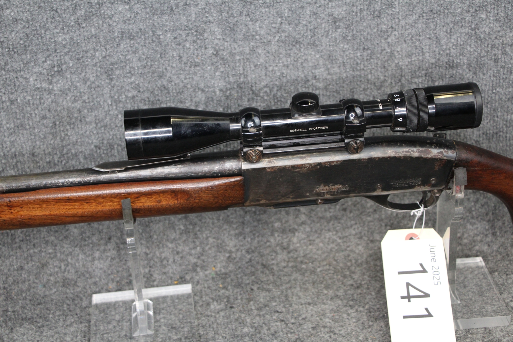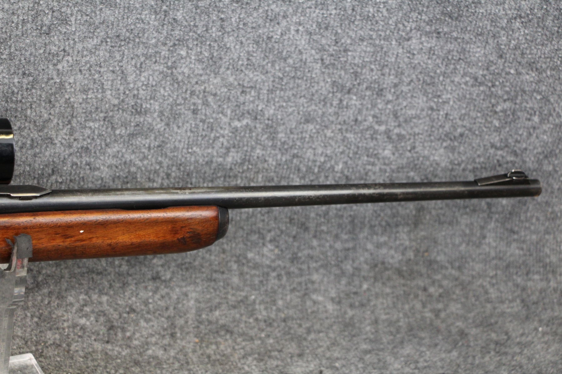 In rough condition. Some pitting and tarnish on the receiver and barrel. Stock has a short crack right side at the receiver. Bushnell 3-9x scope.