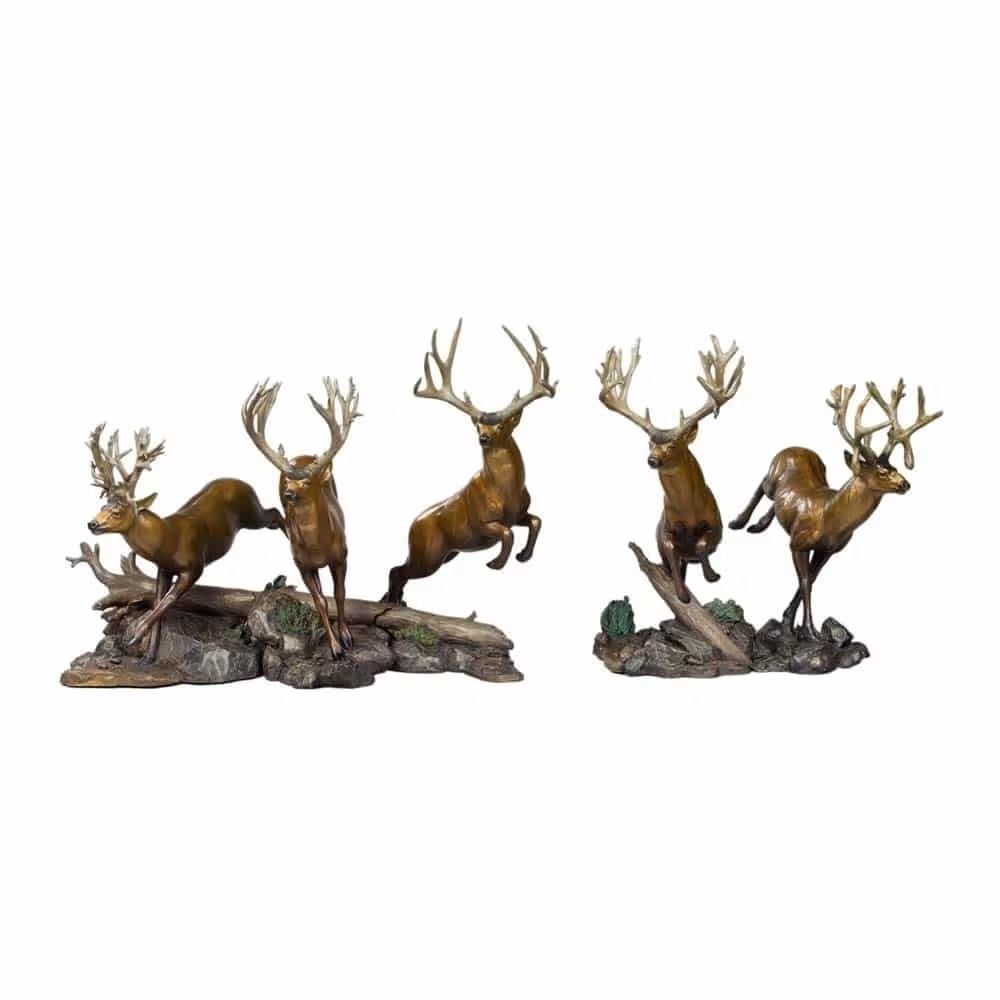 This bronze series of mule deer sculptures was designed for the Mule Deer Foundation. These pieces can be displayed individually; however, they are best presented as a full series, which interlocks to create a larger sculpture. Rip Caswell and his team unite their talents in the creation of their artwork. Their ability to capture emotion and to reflect a spirit in the eyes of their sculptures is their most noted ability. Passionate about conservation, they use their artwork as a way to support organizations dedicated to supporting veterinary programs and organizations that protect wild habitats. They hope that through their artwork, they can share a deep appreciation for the animals they love, and that the eyes of their sculptures may serve as a window into the life, spirit and personality of the subjects they cast in bronze. Their mission is that through their artwork they can revitalize the bond between man, animal and the wild environment that surrounds us.