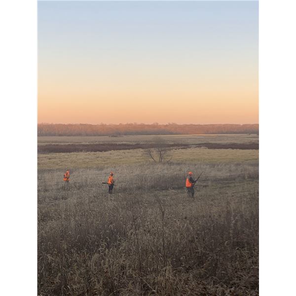 Description: We invite you to North Missouri! Our lodge is situated overlooking hundreds of acres of stunning wetlands, fields, and timber. Come spend a few days with your friends or family and enjoy all that Missouri upland hunting has to offer! A true gentleman's hunt, you'll stay up late telling hunting stories and wake up to fresh breakfast before heading afield for a few hours of flushing birds over working dogs. There's just something about watching a hunting dog go on a point that makes for a fun experience in the outdoors! If you want to try your hand at combination hunt you are welcome to archery or muzzleloader whitetail hunt during the later season! Whitetail hunting will take place over fields, timber, and cut crop from either tree stands, ground blinds or climbing stands depending on your preference. You can hunt whitetail in the mornings and evenings when not pheasant hunting, you only pay a flat trophy fee if you harvest a deer of any size! In February & March, we will keep our eyes on the skies and take advantage of any flocks of migrating snow geese! Snow goose add on to this hunt is $250/hunter/day. Buyer for this trip MUST bring at least 1 full paying guest at $2495/hunter. Balance due at trip booking.