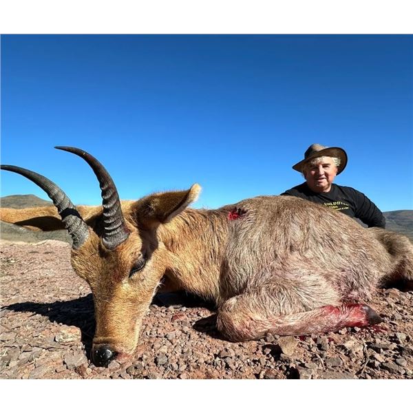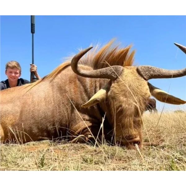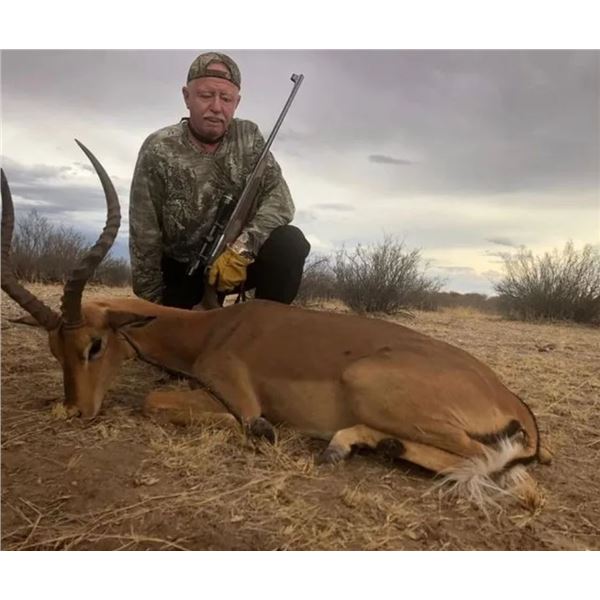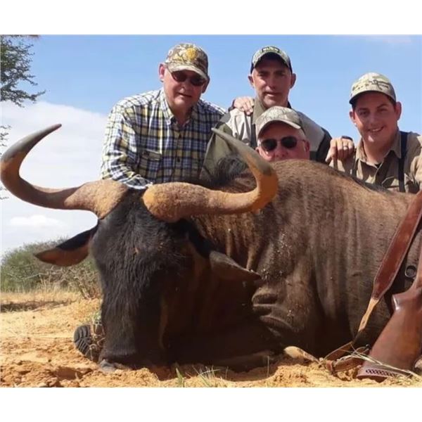 Transportation: Airfare to Kimberly, South Africa not included. Jo-Burg Pick up $500/group each way Upgrades available: Luxury Victoria Falls or Cape Town 3 day add on. Trophy List Sample: Springbuk - $800, Ostrich - $700, Gemsbok - $1400, Blue Wildebeest - $1400, 50+” Kudu - $3500, Zebra - $1200, Black Wildebeest - $1400, Jackal - $300, Blesbok - $600, Reedbok - $2000, Red Hardebeest - $1400, Impala - $750, 42’ Buffalo-$12,000, Roan $6,000, Sable $4,000 Description: This is an unusal hunt for many of the local species. Located in the beautiful Kalahari region of South Africa, this 10,000 acre concession, is teaming with exotic wildlife. Ready water supplies, natural food, grasslands, and Thornveld make this the perfect habitat for the majestic Black Impala, Wildebeast,Springbok and Blesbok. Many Sable in the 40 inch category, along with record book quality Roan and Cape Buffalo roam the land as well. A Traditional Lodge , Great food and the sounds of the African night by campfire are waiting for you