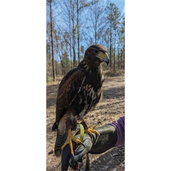 The Georgia Falconry Association has donated a one-day Falconry Hunt. The hunt can be done on your property, but the group has great hunting land around Hawkinsville where the hunt can be conducted with great results in the past. This hunt will be available during the 2025-26 small game season. It is an opportunity to observe a small game hunt conducted with raptor birds and their handlers.
