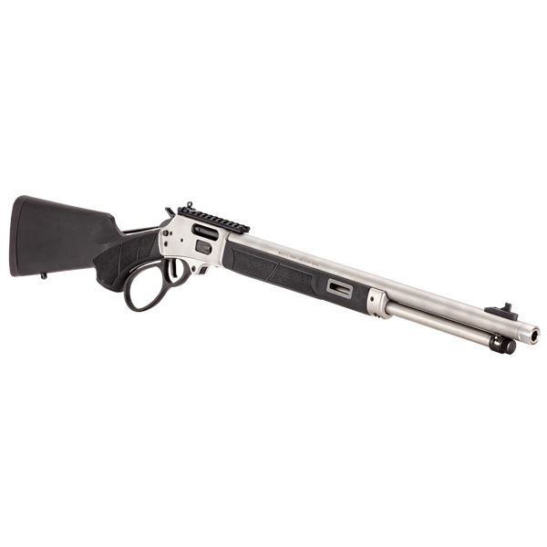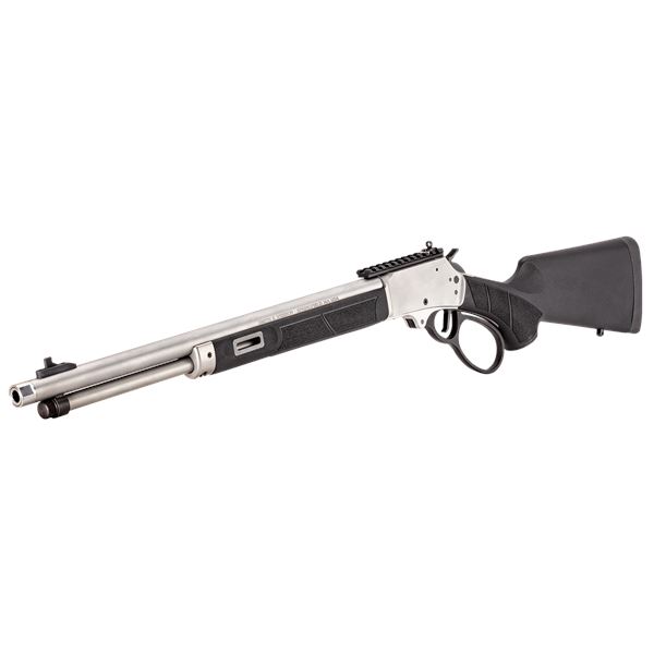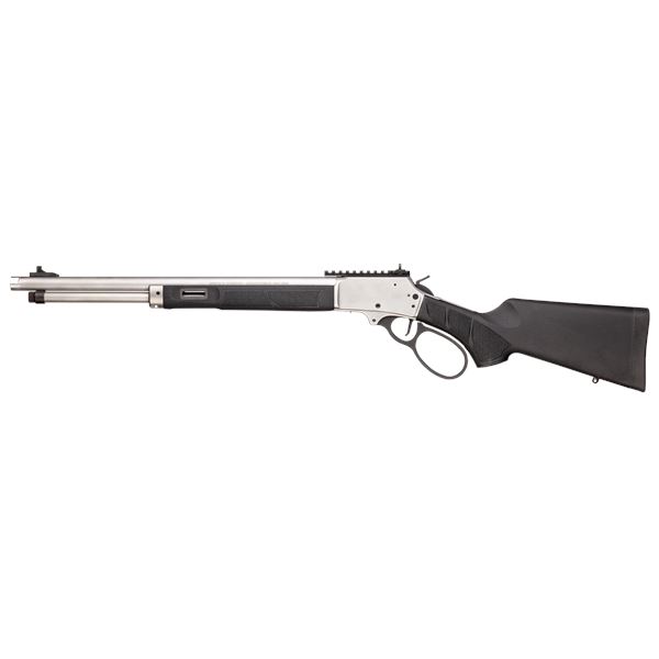 Smith & Wesson 1854 Stainless Lever Action Rifle .44 Magnum 19.25" Barrel With Black Synthetic Stock, New. Tubular magazine, threaded barrel. XS Sights ghost ring rear sight, fixed front sight. M-LOK® synthetic forend with textured grip panels. This is a non-restricted firearm.