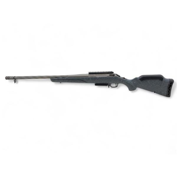 Ruger American Gen II Bolt Action Rifle 243 Winchester 20" Threaded Barrel Gray Splatter Synthetic Stock, New. Gun metal grey Cerakote finish. Detachable magazine, adjustable trigger. Receiver drilled and tapped with one piece rail installed. This is a non-restricted firearm.