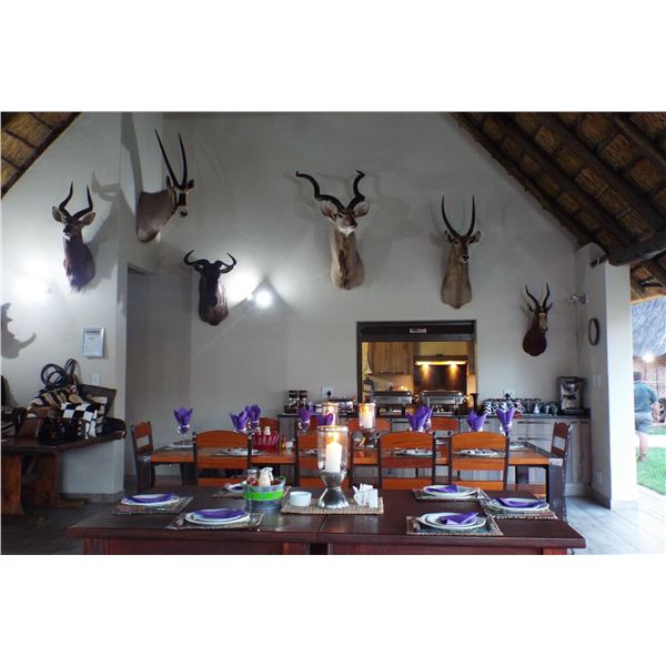 This donation includes 10 days of hunting and 9 nights, full accommodations and meals at one of their Luxurious Thatched Chalets with en suite baths, licensed Professional Hunter, tracker, skinner and daily laundry service for 4 Hunters.