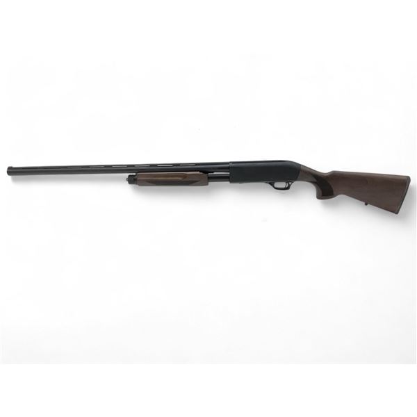 Canuck Pioneer Pump Action Shotgun 12Ga 3" Chamber 28" Vent Rib Barrel Wood Stock, New. Fiber optic sight; comes with a removable choke. This is a non-restricted firearm.