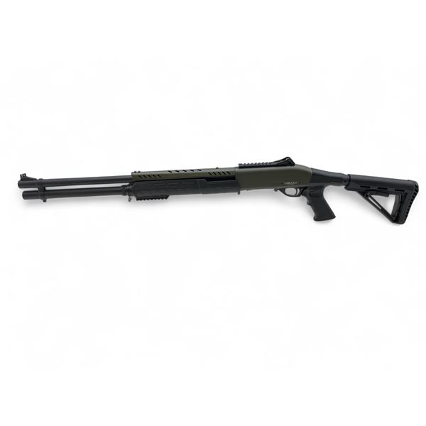 Canuck Sentry 12Ga Pump Action Shotgun 3" Chamber 24" Barrel With Pistol Grip Adjustable Stock Green, New. Adjustable stock; comes with a removable choke. Fiber optic front sight, adjustable rear sight. Receiver drilled and tapped with one piece rail installed. This is a non restricted firearm.