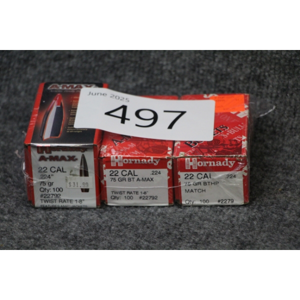 2 boxes Hornady A-Max 75 gr. 1 box Hornady 75 gr. BTHP Match