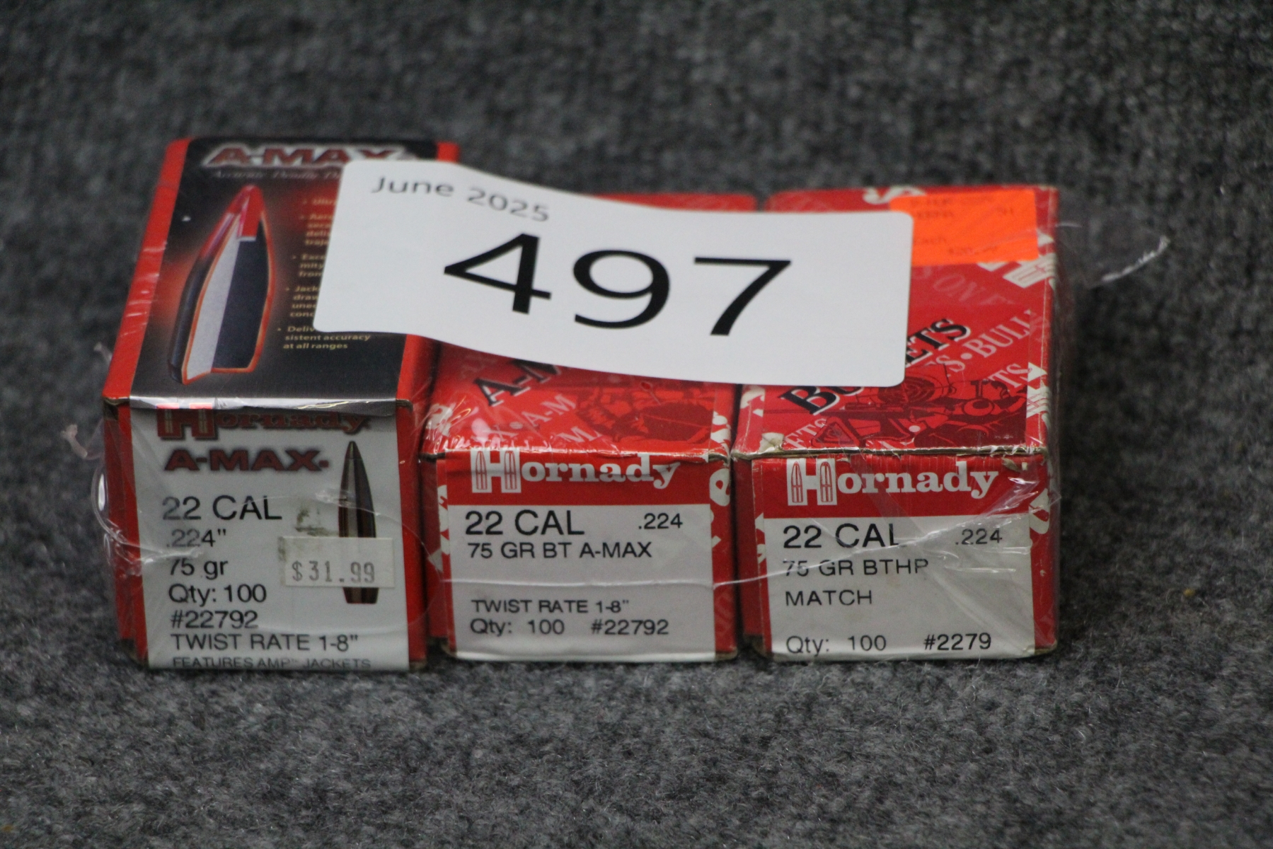 2 boxes Hornady A-Max 75 gr. 1 box Hornady 75 gr. BTHP Match