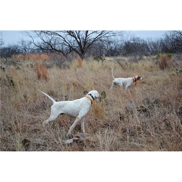 Texas Quail Hunt Package – 2 Hunters, 2 nights lodging, 3 hunting sessions, valid 7 days a week, during the months of October through December at Divided Find Ranch near San Angelo, Texas