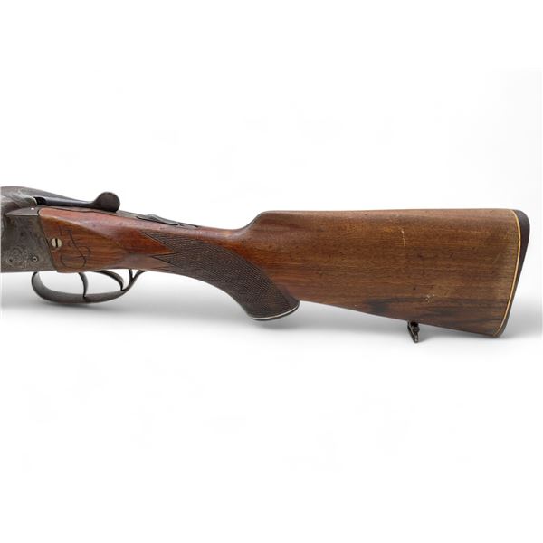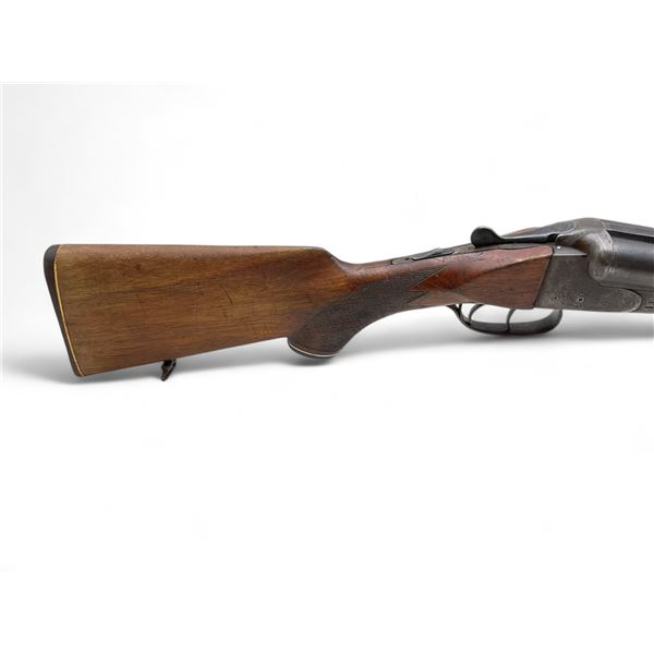 Baikal IJ-26 Side By Side Shotgun 12Ga 2.75" Chambers 20" Barrels Wood Stock. Bead sight, fixed chokes. Wood forend and rear stock cracked in several places. This is a non-restricted firearm.