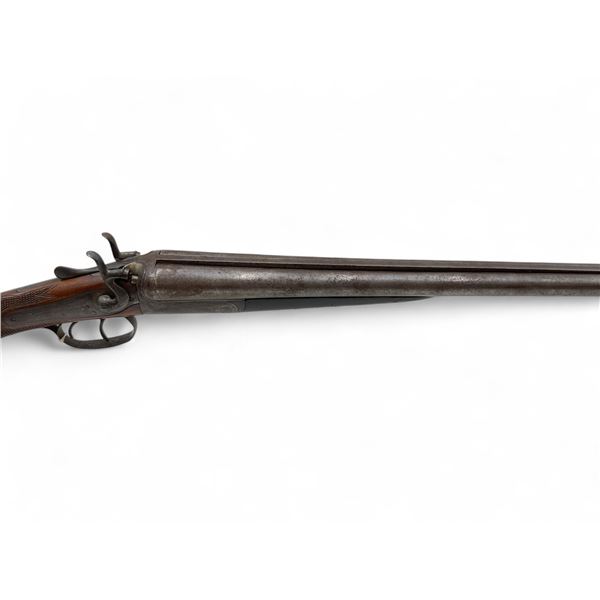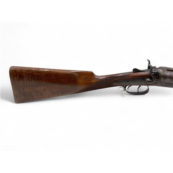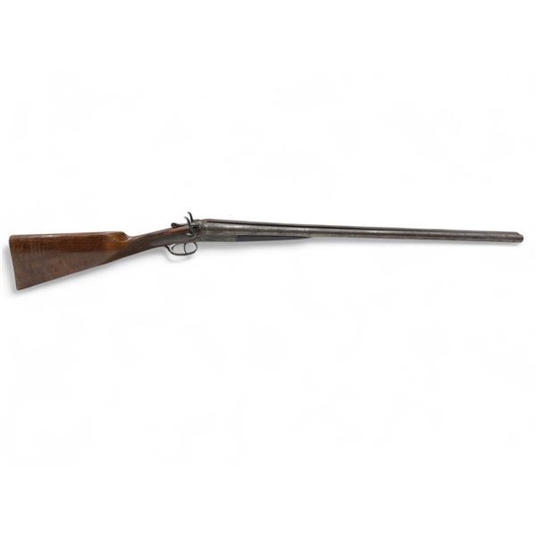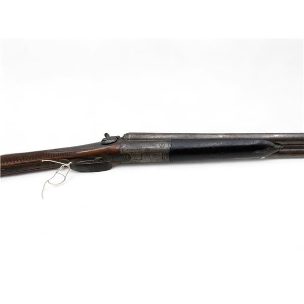P. Knight Side By Side Shotgun 16Ga 28" Barrels Wood Stock. Missing bead sight; fixed chokes. Damascus Steel barrels. Exposed hammers, double triggers. Wood forend has been painted. this is a non-restricted firearm.