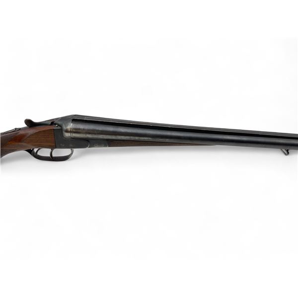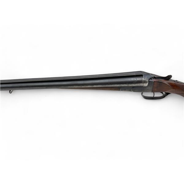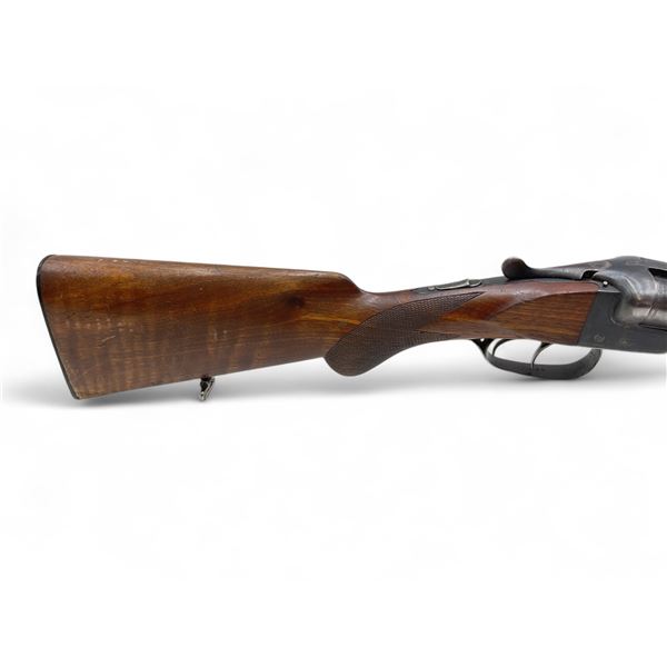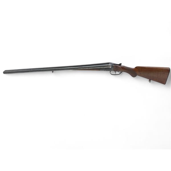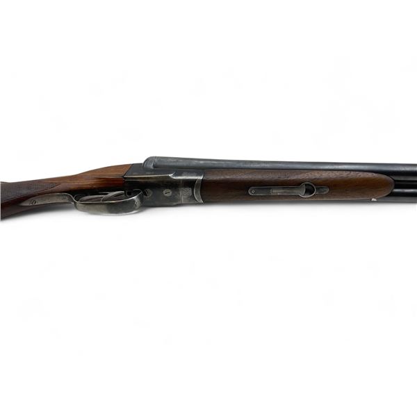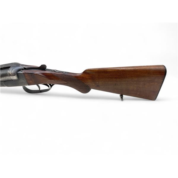 Geco Side By Side Shotgun 12Ga 2.75" Chambers 30" Barrels Wood Stock. Bead sight, fixed chokes. Rear stock cracked by receiver and butt plate. This is a non-restricted firearm.