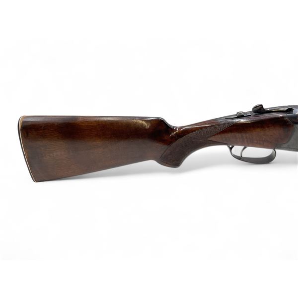 Lanber Over Under Shotgun 12Ga 2.75" Chambers 28" Barrels Wood Stock. Vent rib with bead sight; fixed chokes. Rear stock has wear at rear near butt pad. This is a non-restricted firearm.