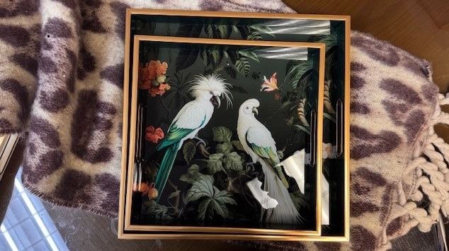 Top these lovely, decorative trays with sweets and such for a day of lounging in blissful comfort. Perfect hostess gift for that friend who has absolutely everthing. DALLAS SAFARI CLUB THANKS GRACE PULK, LADIES COMMITTEE CHAIR, FOR THIS 100% DONATION.