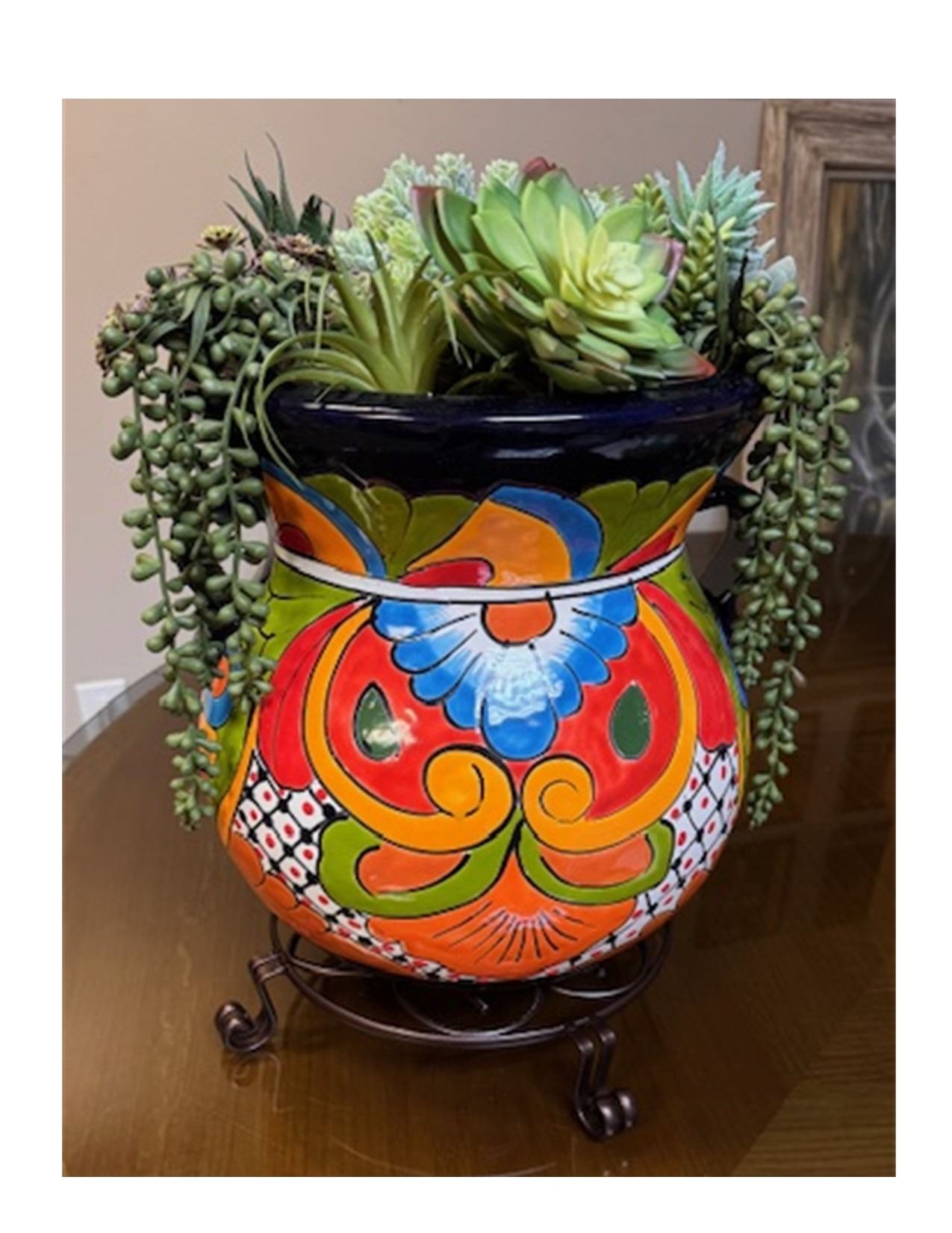 Lot 138 CELIA SCOTT: Talavera Pottery Planter with Faux Succulents