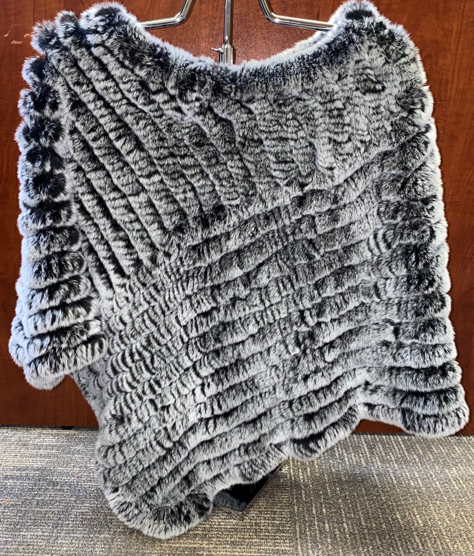 Lot 143 FRIEND OF DSC: Black & Gray Rex Rabbit Poncho