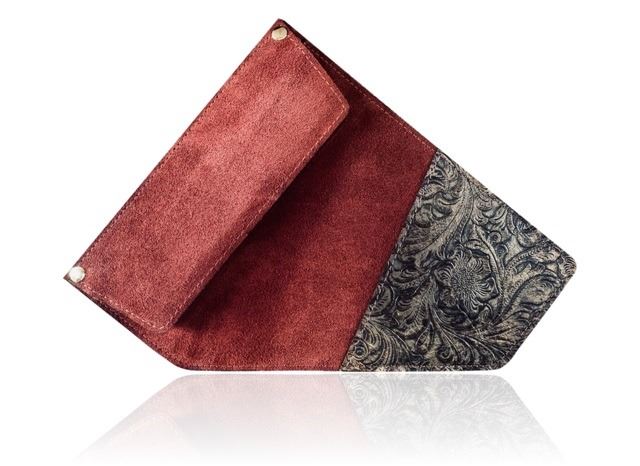 Whitten Gun Cases new Slim Sleeve handmade in the USA by gun case artist, Jillian Whitten. This genuine suede and leather sleeve has a secured flap that functions to close the slim sleeve securing your pistol inside, or it can be tucked and fixed inside the sleeve for quick access to your firearm. This gun sleeve is perfect for your handbag, briefcase, overnight bag, range bag, everyday bag or anywhere in your vehicle, etc. Constructed of genuine mahogany suede and complimented by a large accent panel of embossed cowhide leather featuring a bronze metallic floral design, tan stitching and gold-tone hardware. The flap opens and closes with Dual Lock technology™. Fits pistols up to approx. 5"W x 6,75"L. DALLAS SAFARI CLUB THANKS WHITTEN GUN CASES FOR THIS 100% DONATION. Jillian Whitten, jillian@whittenguncases.com, 727-492-5976, Booth #1719.